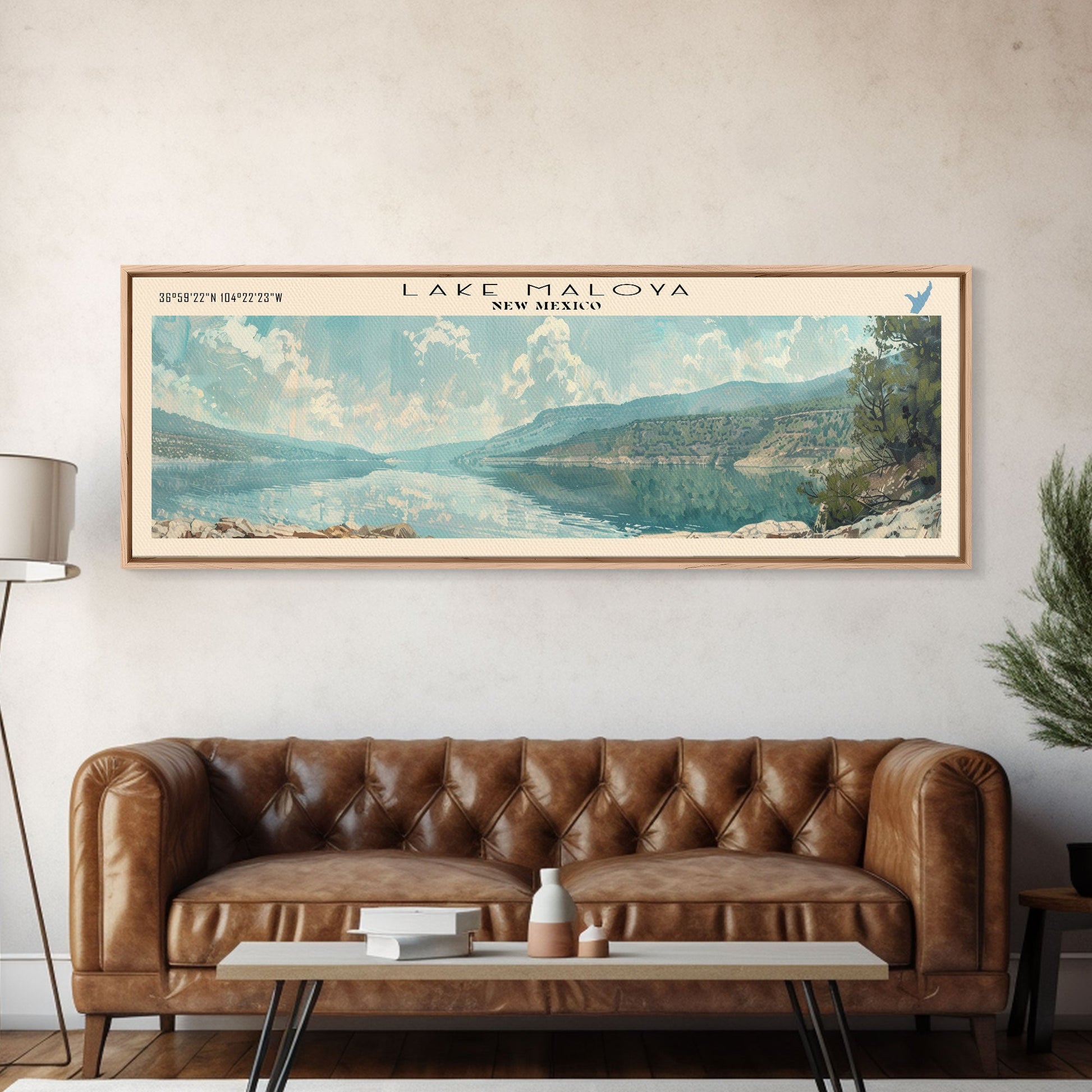 Lake Maloya New Mexico Framed Canvas Print, Lake House Decor, Panoramic Wall Art, Travel Poster, Serene Lake Painting, Contemporary Art