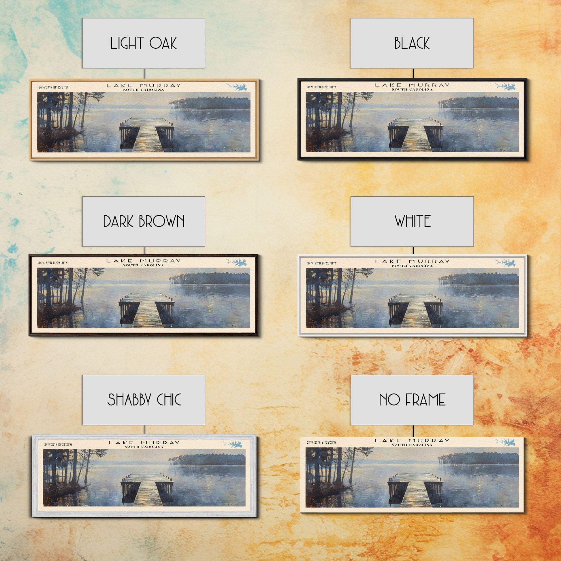 Lake Murray South Carolina Framed Canvas Print, Lake House Decor, Panoramic Wall Art, Travel Poster, Serene Landscape Painting, Bedroom Decor