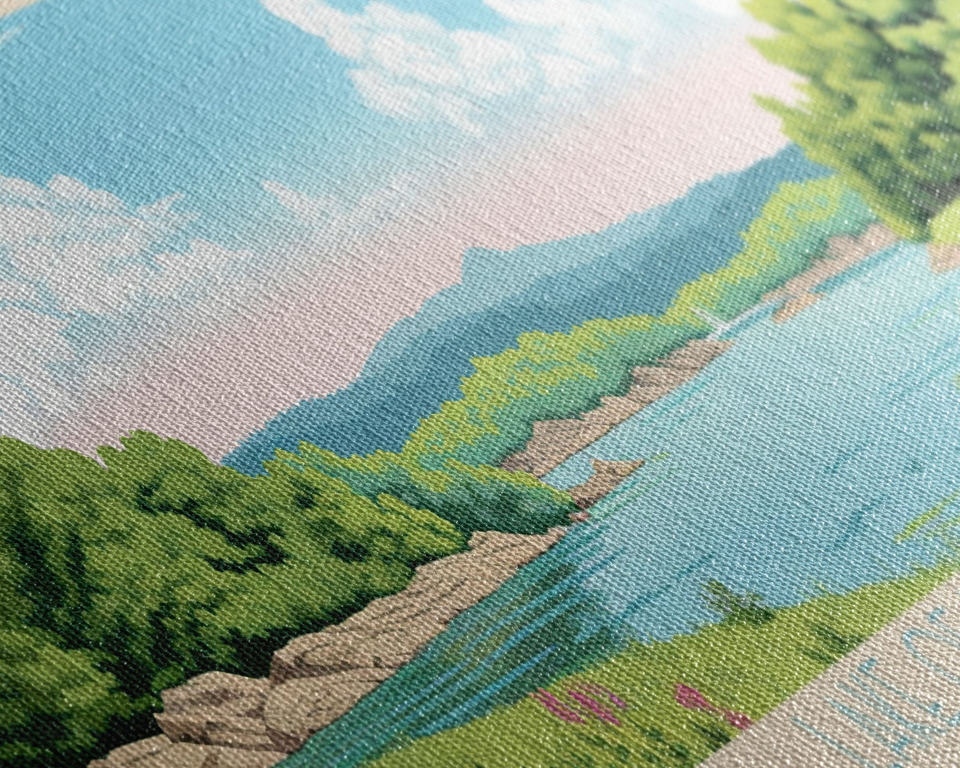 Most of our canvases are made in the USA, with the exception of canvases ordered with the light oak unstained frames, and any large canvases (24x48, 30x60, 16x48 and 20x60) ordered WITH a frame. These are temporarily made in and shipped from Europe, while we try to find a more consistent supplier in the USA.