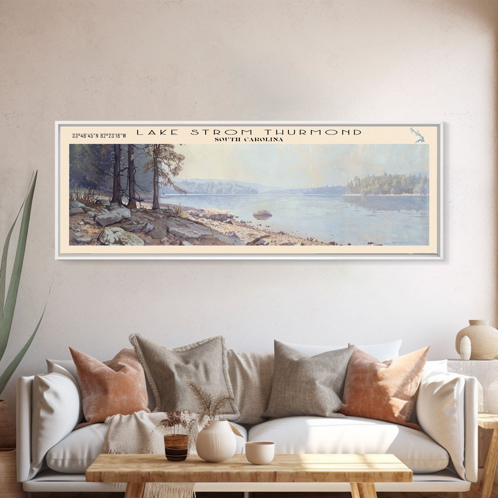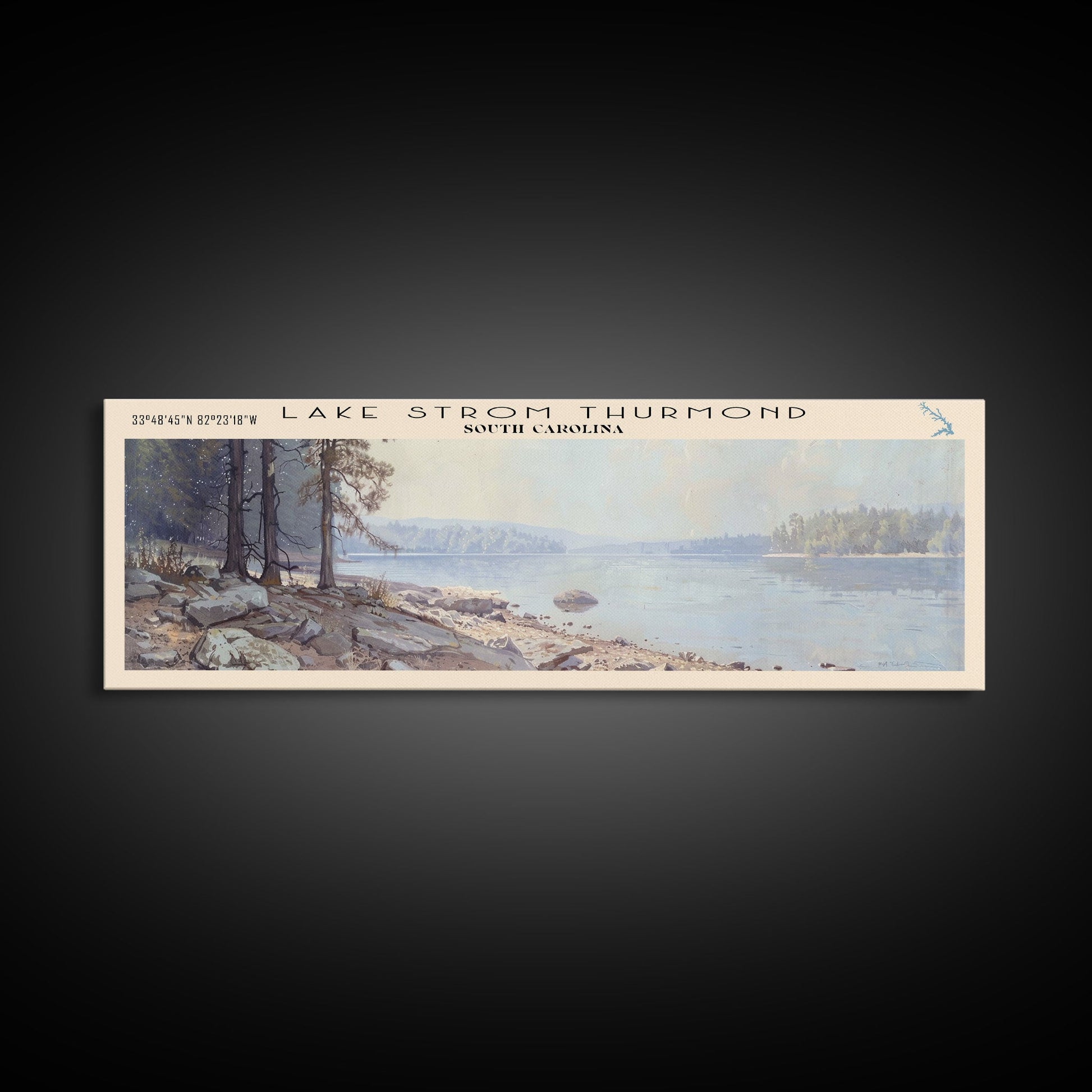 Lake Strom Thurmond South Carolina Framed Canvas Print, Lake House Decor, Panoramic Wall Art, Travel Poster, Serene Landscape Painting, Bedroom Decor
