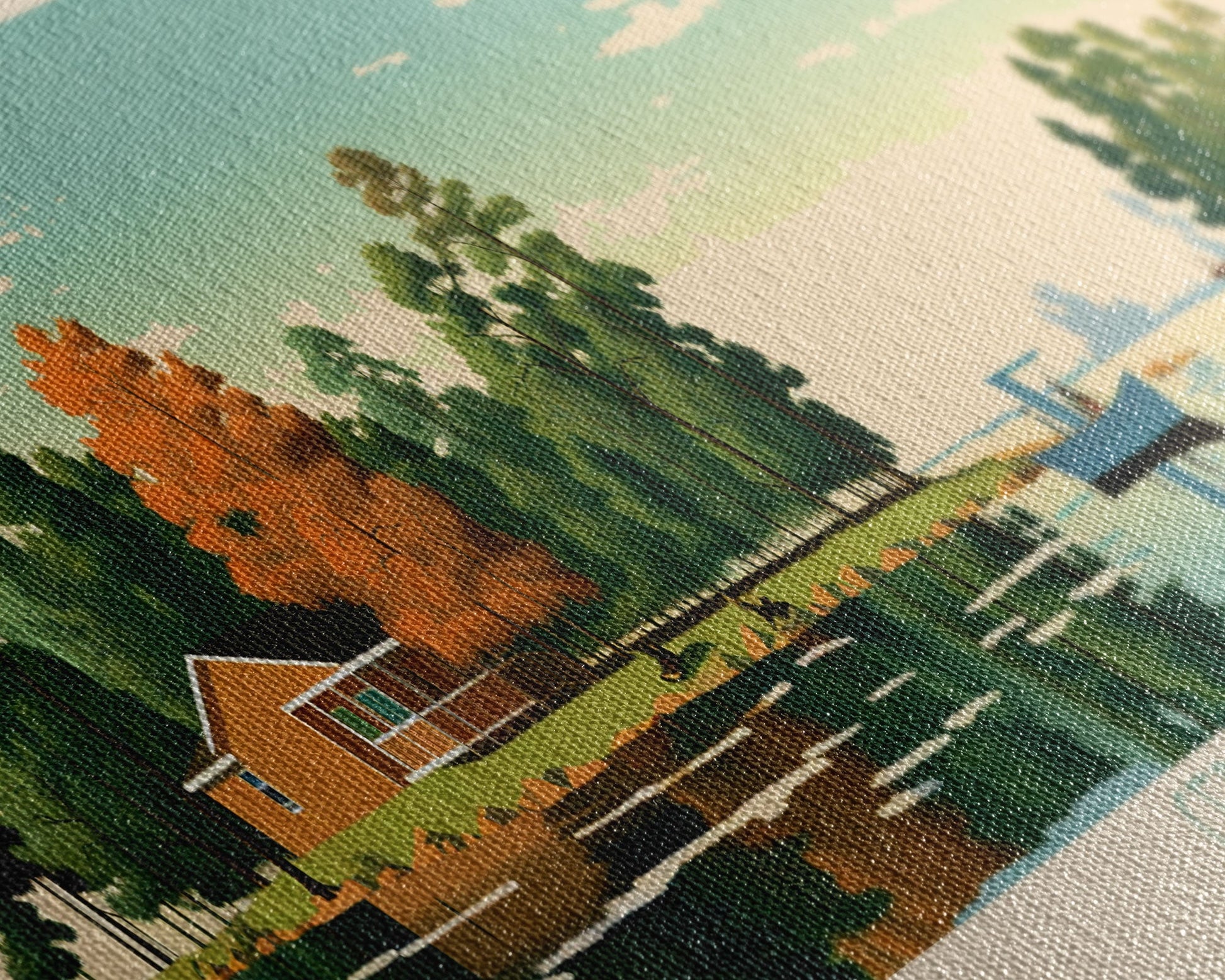 Most of our canvases are made in the USA, with the exception of canvases ordered with the light oak unstained frames, and any large canvases (24x48, 30x60, 16x48 and 20x60) ordered WITH a frame. These are temporarily made in and shipped from Europe, while we try to find a more consistent supplier in the USA.