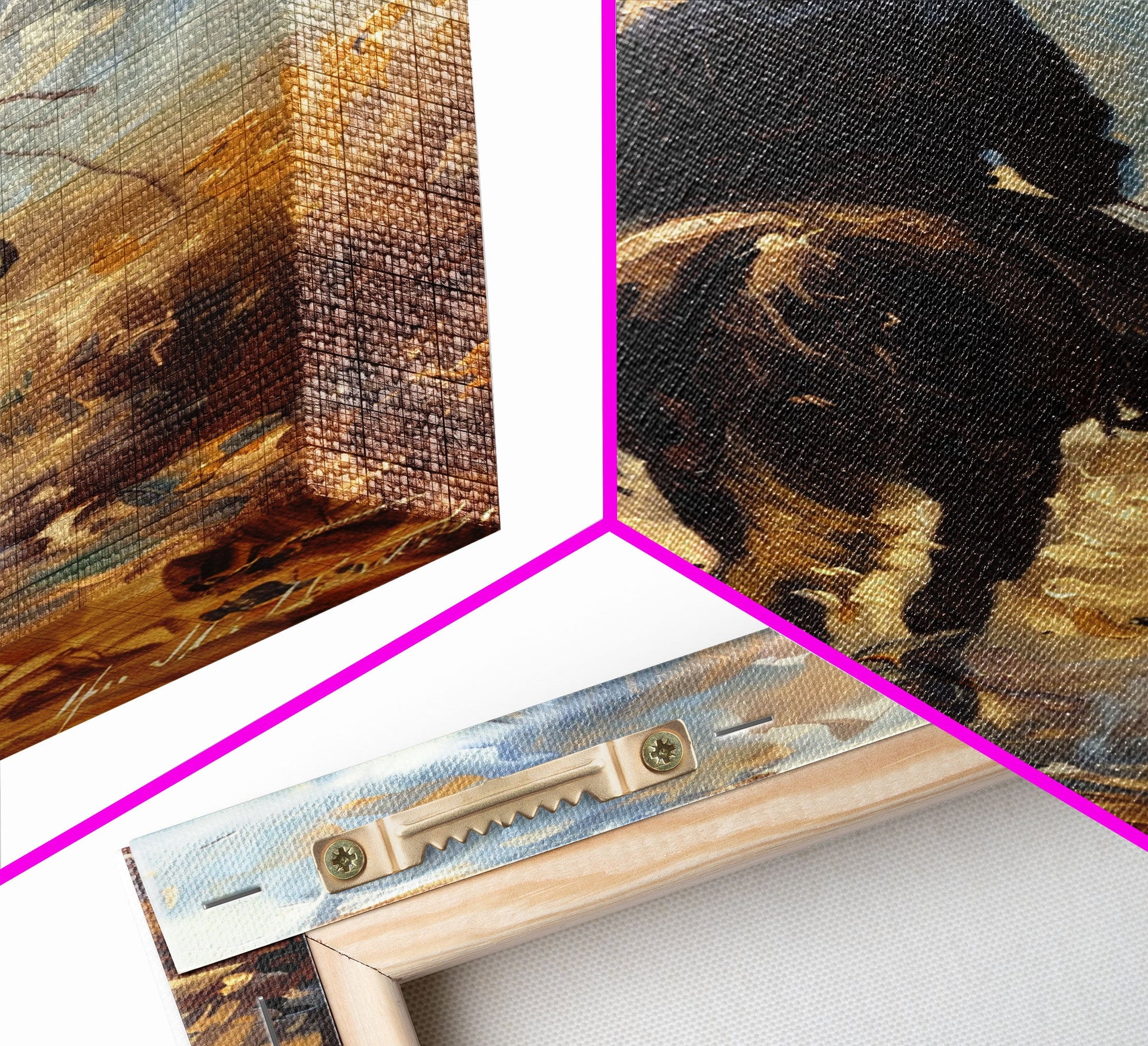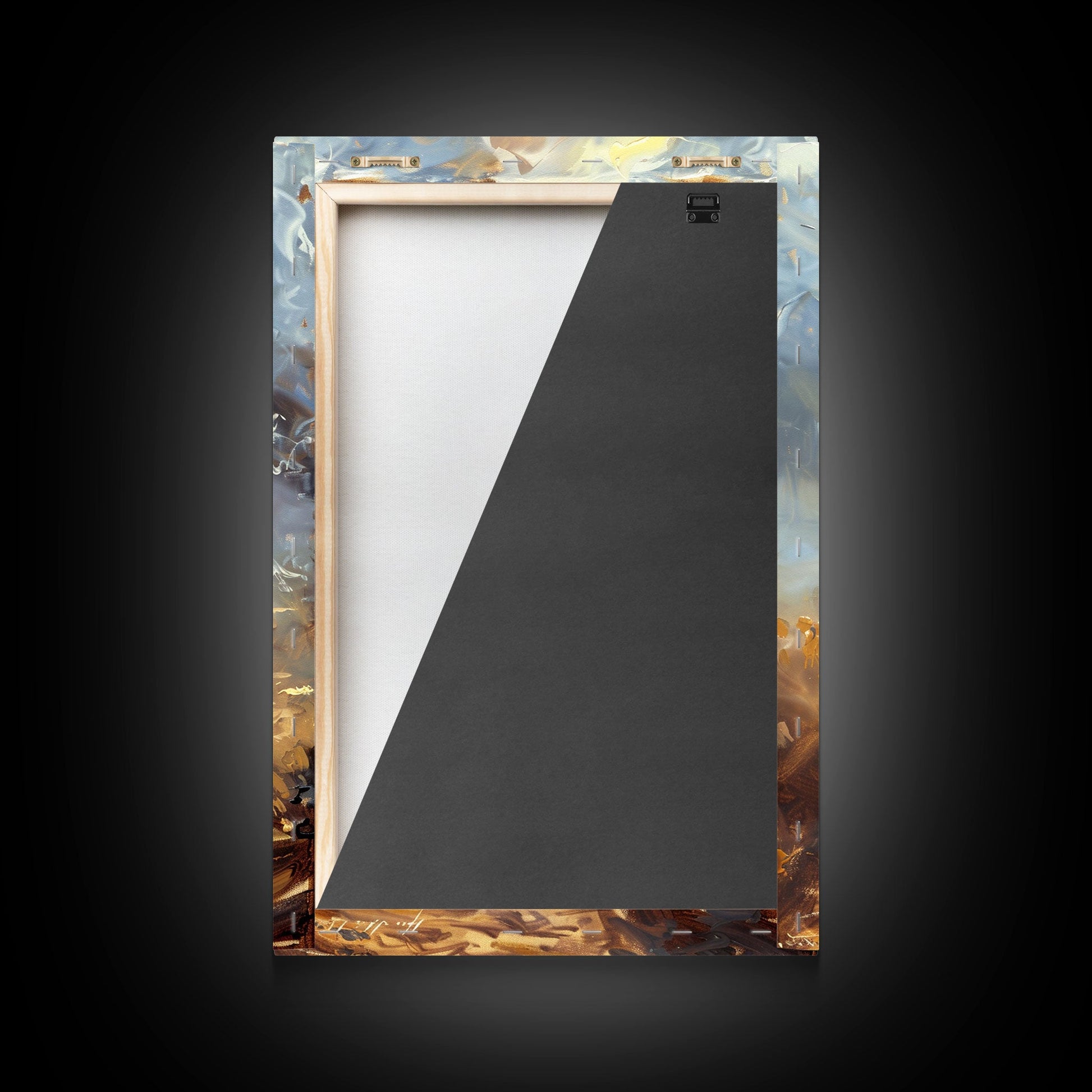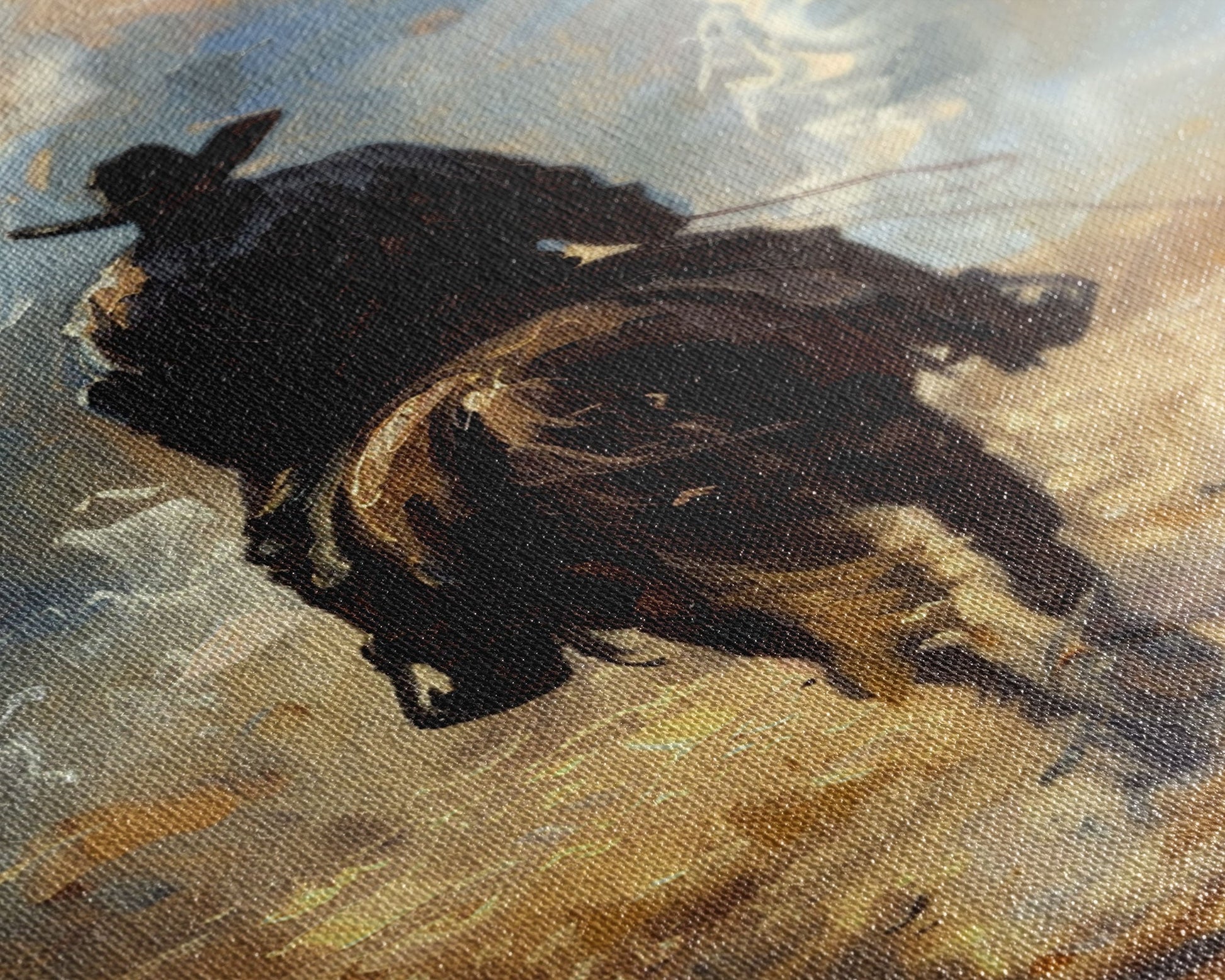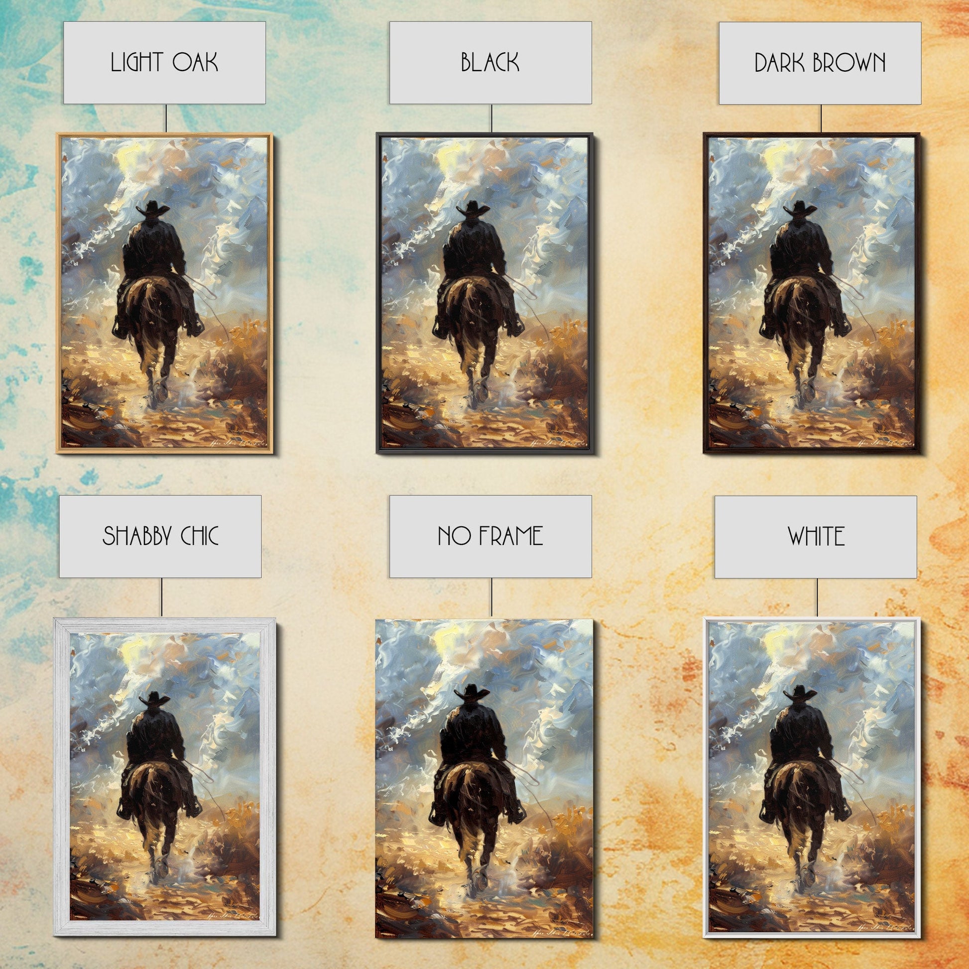 Lone Cowboy on Horse in Wilderness - Framed Canvas Print, Western Art, Rustic Decor, Living Room Wall Art, Cowboy Themed Art