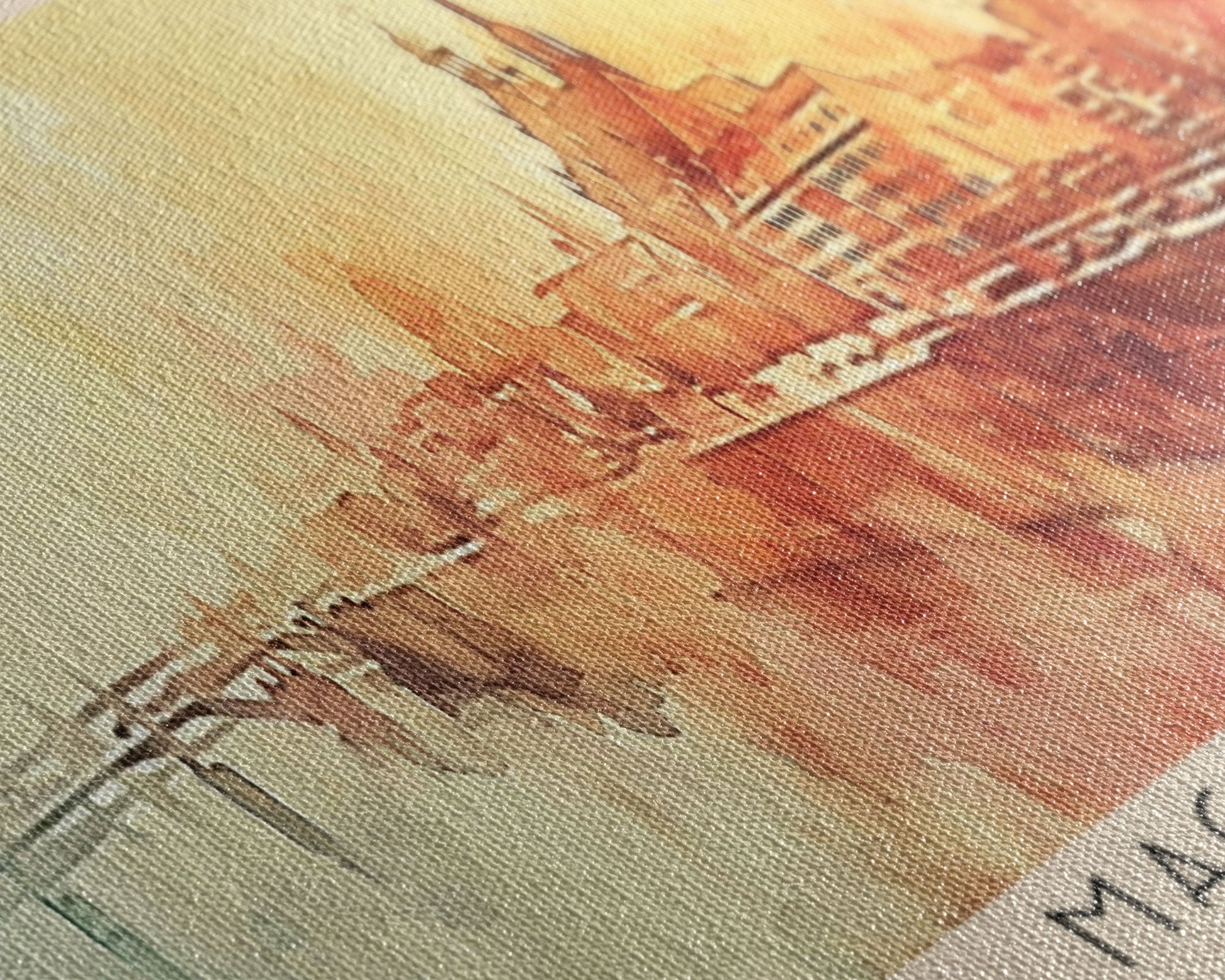 Most of our canvases are made in the USA, with the exception of canvases ordered with the light oak unstained frames, and any large canvases (24x48, 30x60, 16x48 and 20x60) ordered WITH a frame. These are temporarily made in and shipped from Europe, while we try to find a more consistent supplier in the USA.