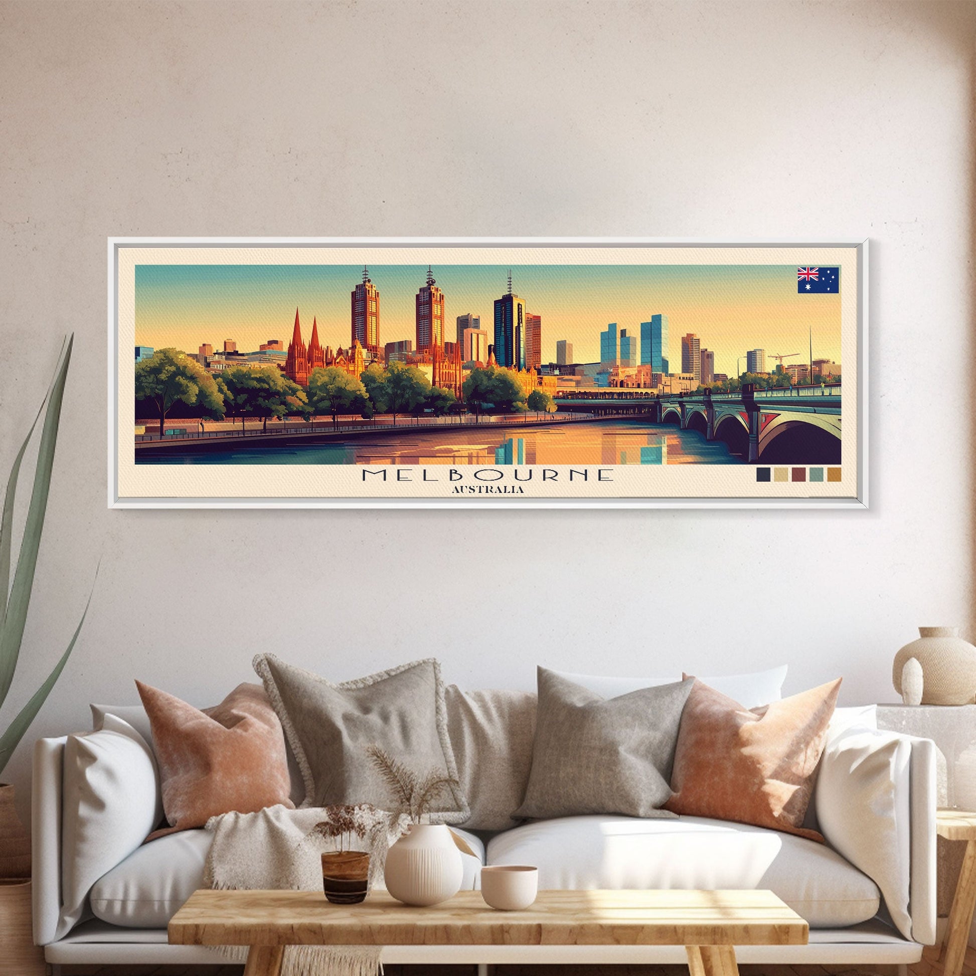 Melbourne, Australia Panoramic Travel Poster Canvas Print, Melbourne, Australia Painting, Australia Art, Melbourne Travel Art, Living Room Painting