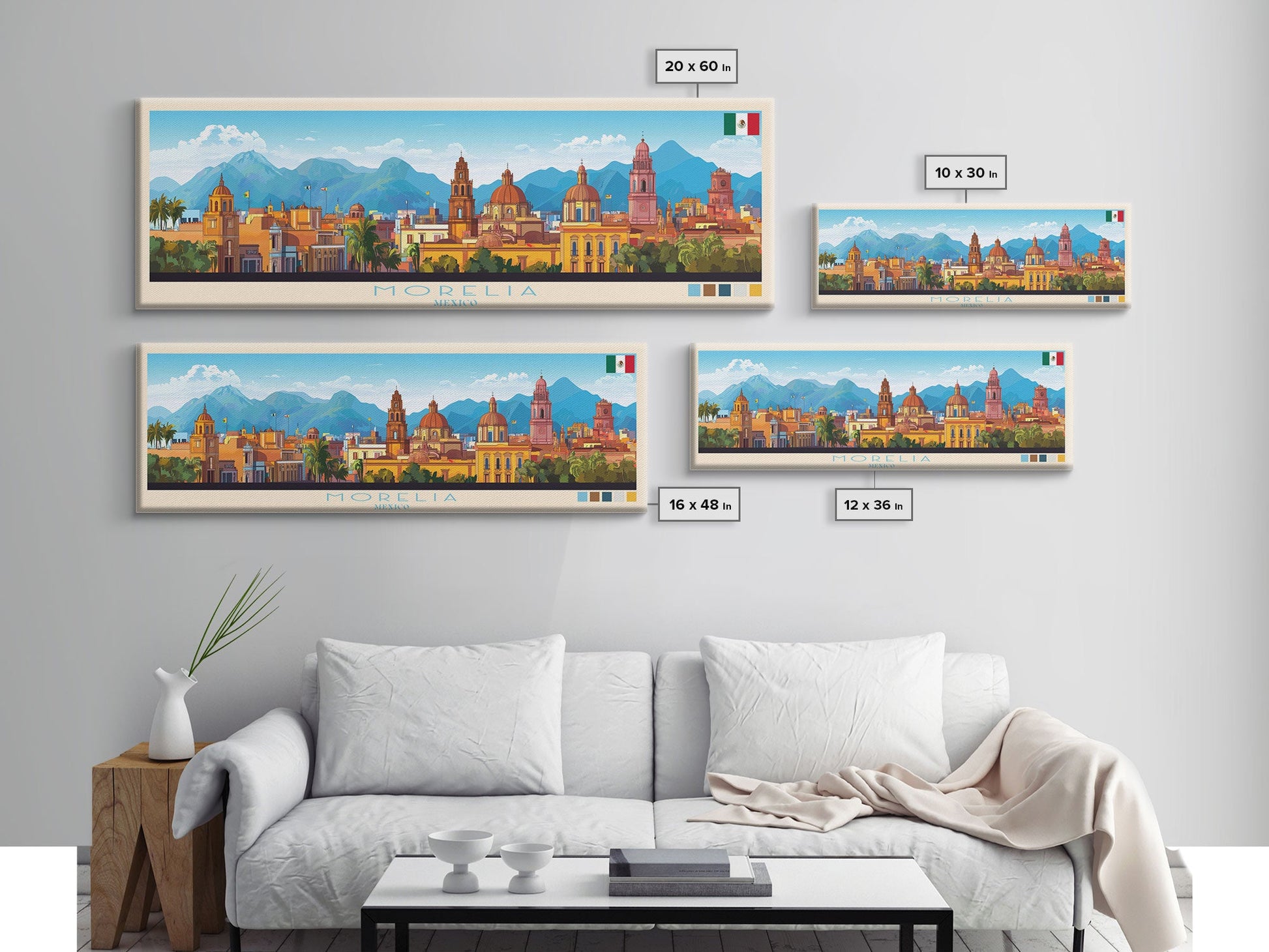 Morelia, Mexico Panoramic Travel Poster Canvas Print, Morelia, Mexico Painting, Mexico Art, Morelia Travel Art, Living Room Painting
