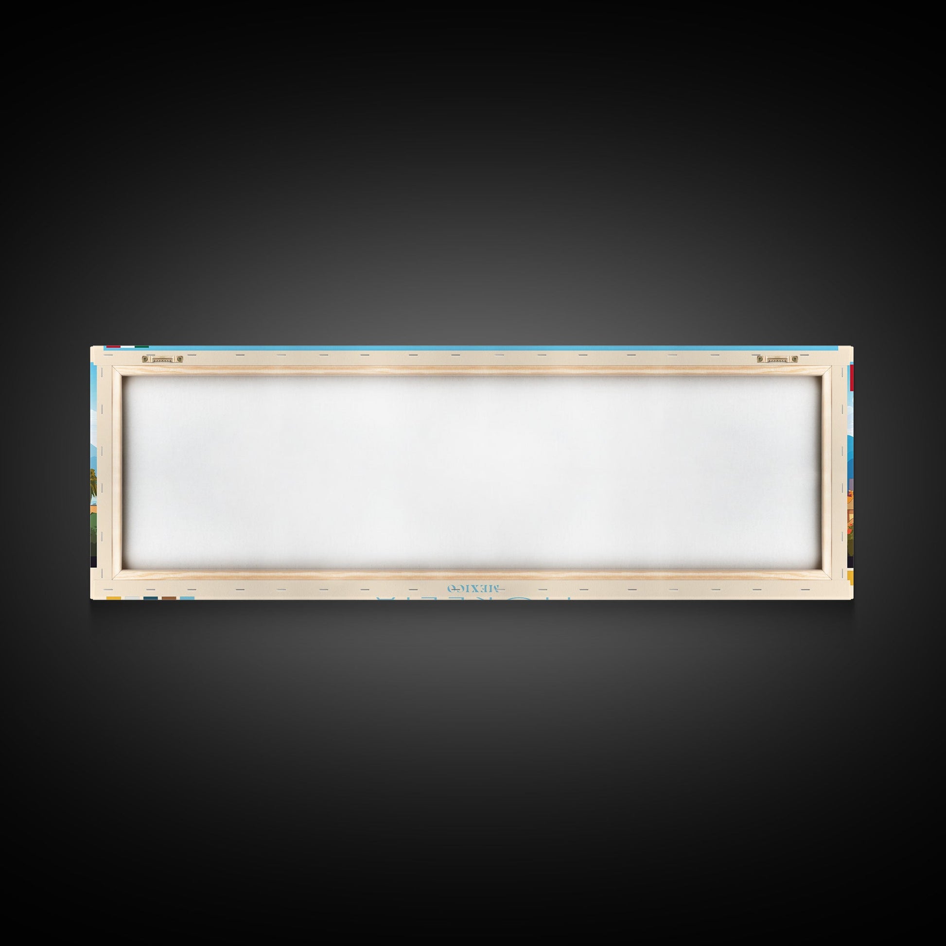 Most of our canvases are made in the USA, with the exception of canvases ordered with the light oak unstained frames, and any large canvases (24x48, 30x60, 16x48 and 20x60) ordered WITH a frame. These are temporarily made in and shipped from Europe, while we try to find a more consistent supplier in the USA.