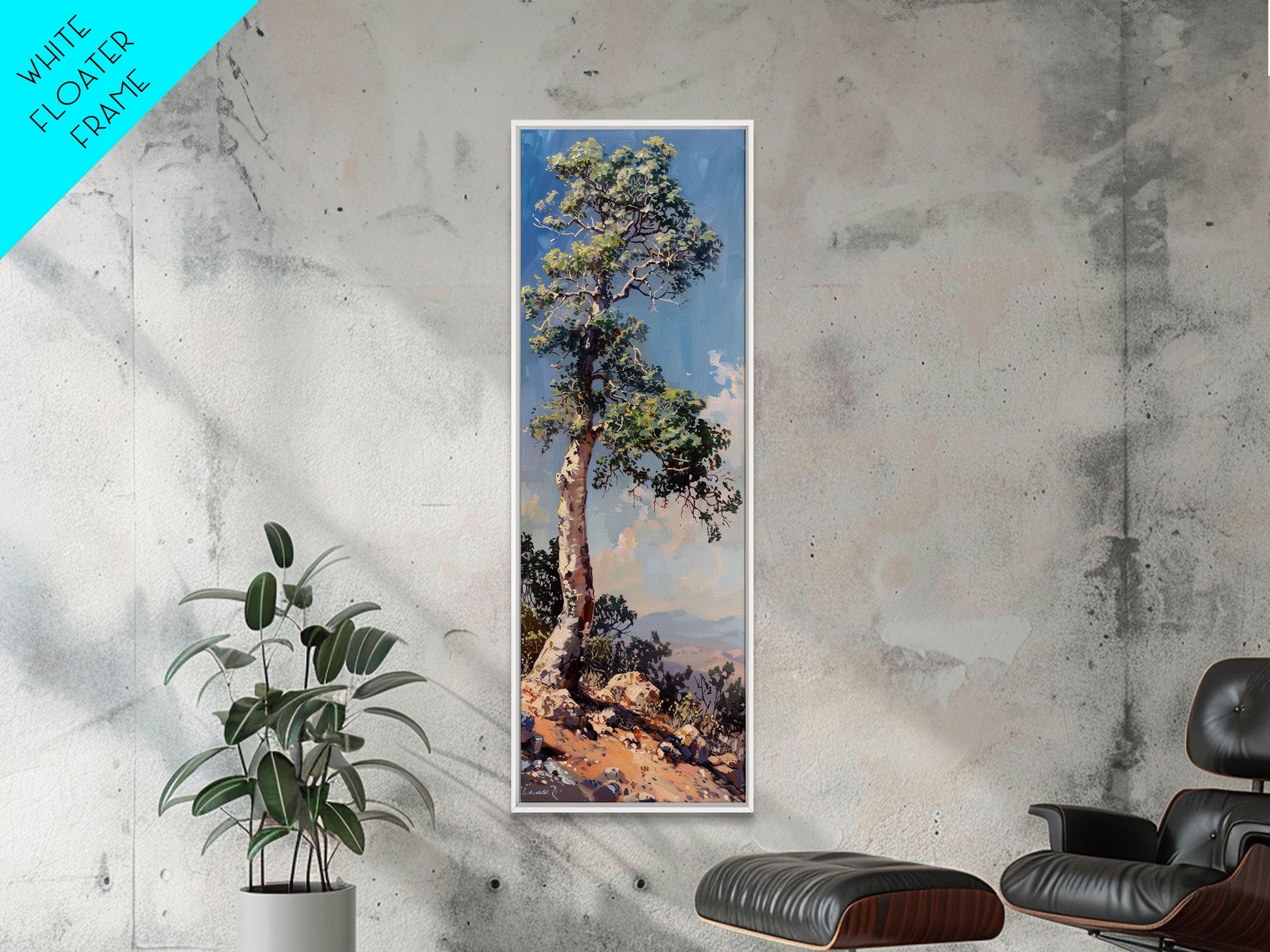 Mountain Landscape Canvas Art Framed, Tall and Skinny Canvas Wall Print, Modern Landscape Painting, Desert Wall Art for Living Room