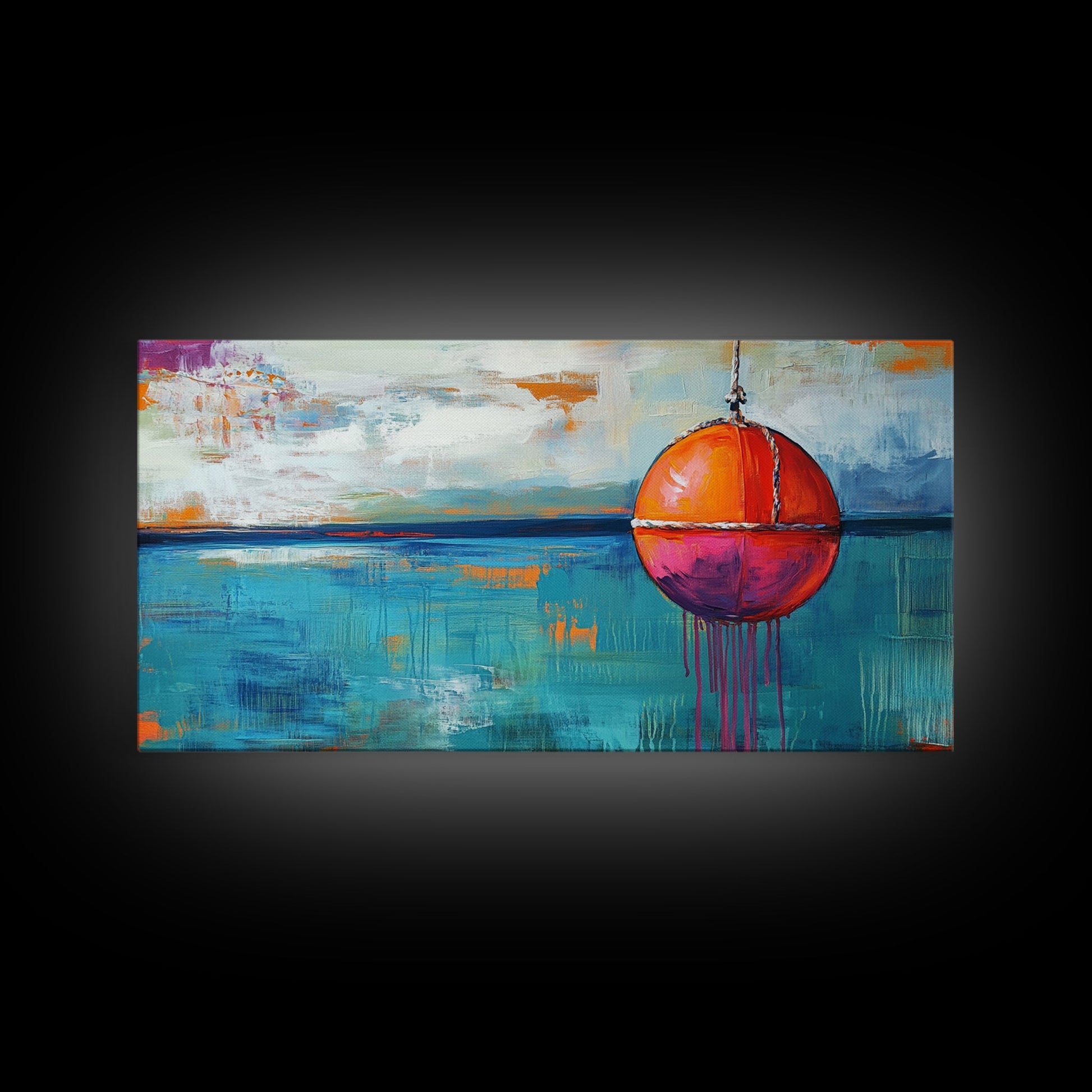 Nautical Buoy Painting, coastal wall art, blue and green wall art, nautical decor, ocean painting, framed canvas print, rustic decor