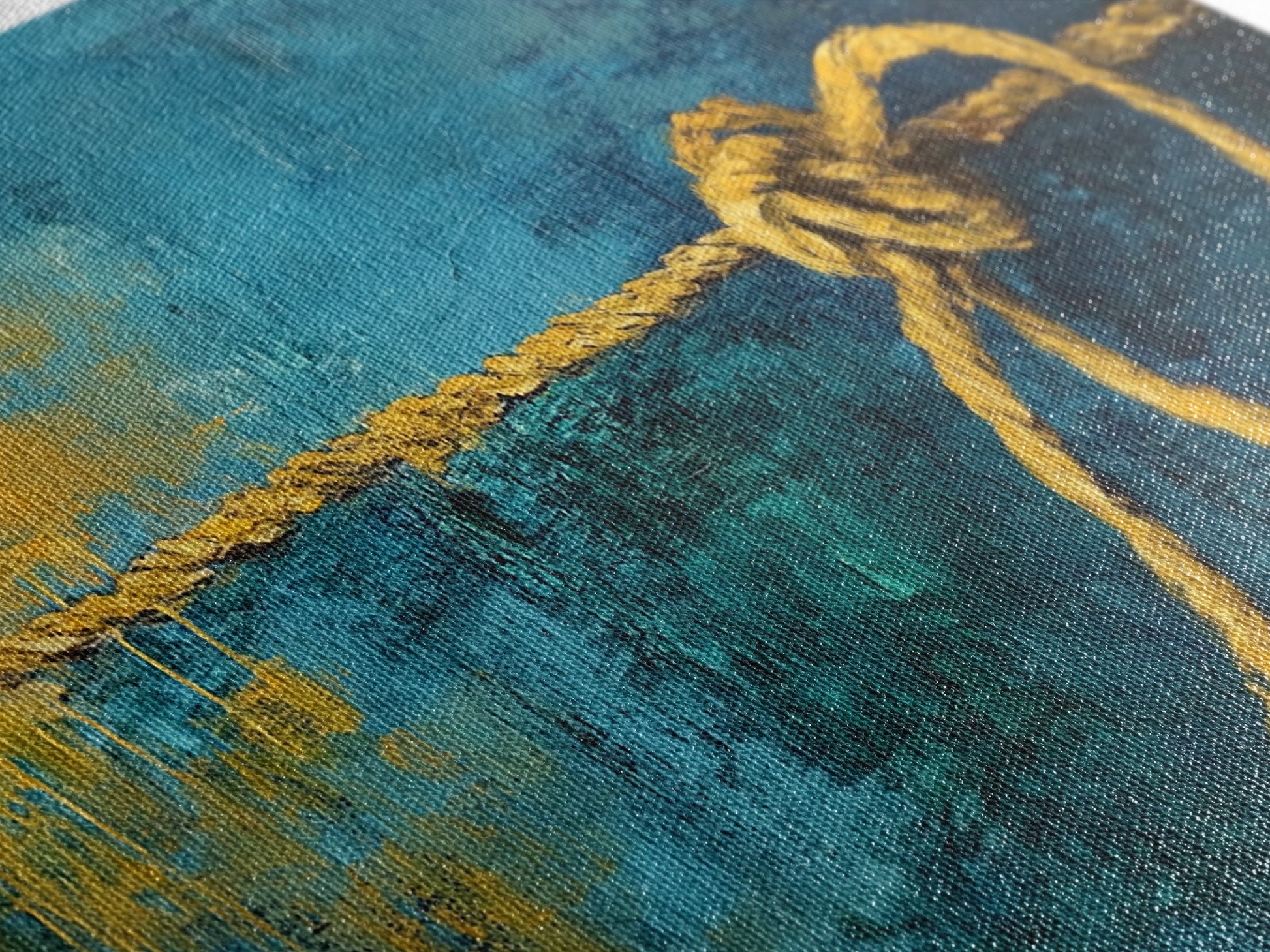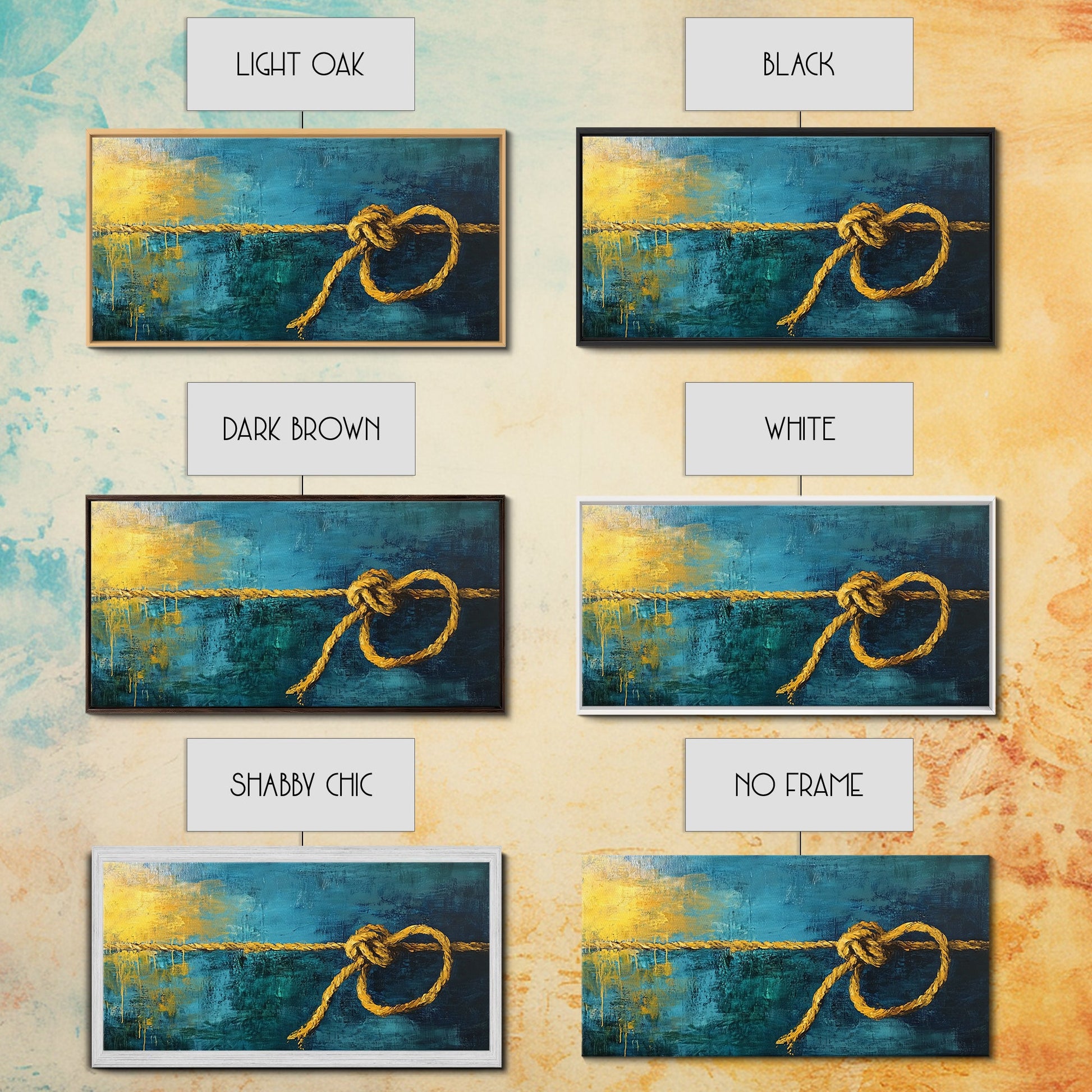 Nautical Knot, coastal wall art, rustic decor, blue and green wall art, ocean painting, framed canvas print, extra wide art