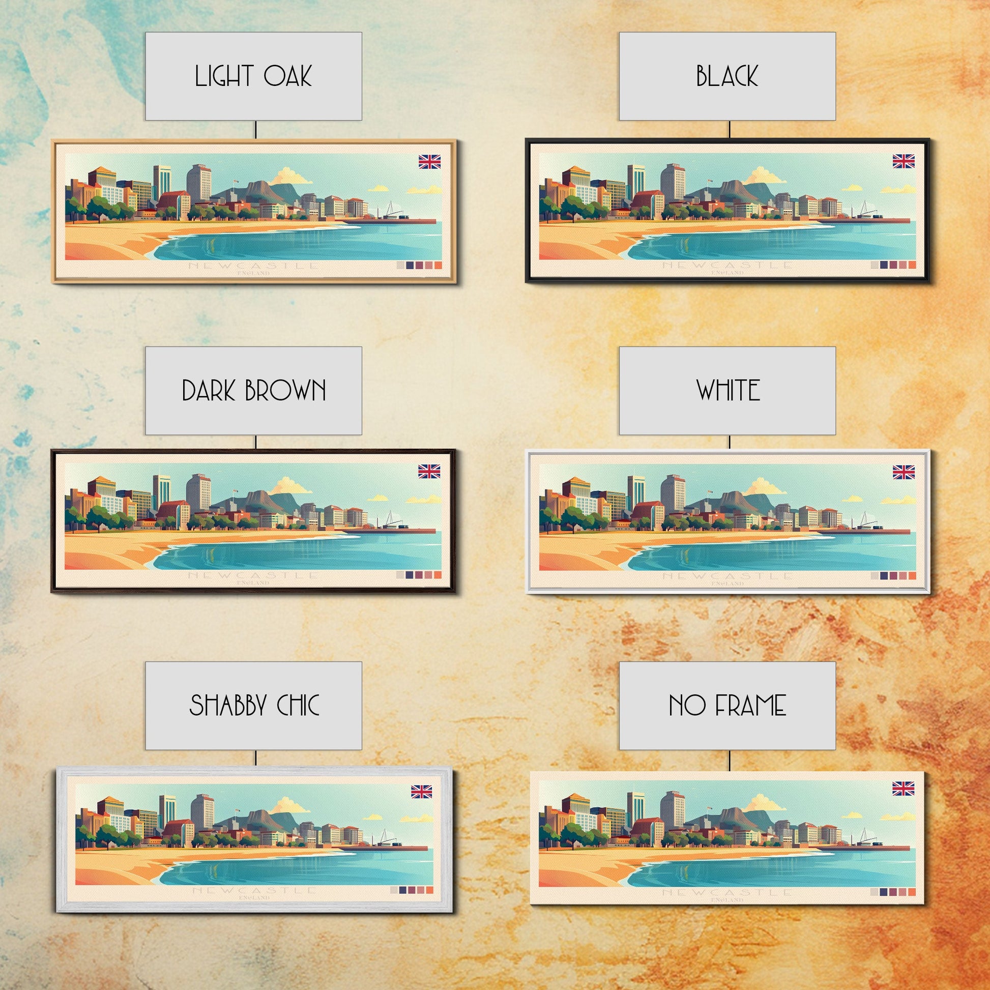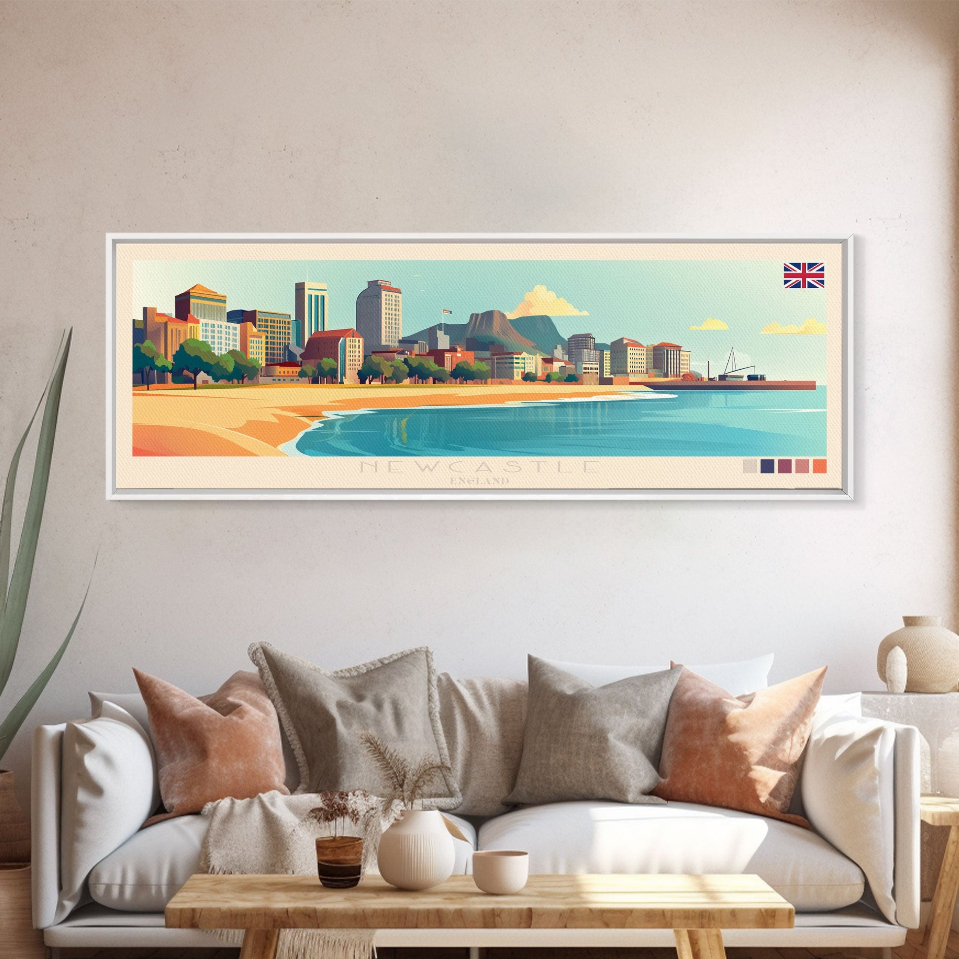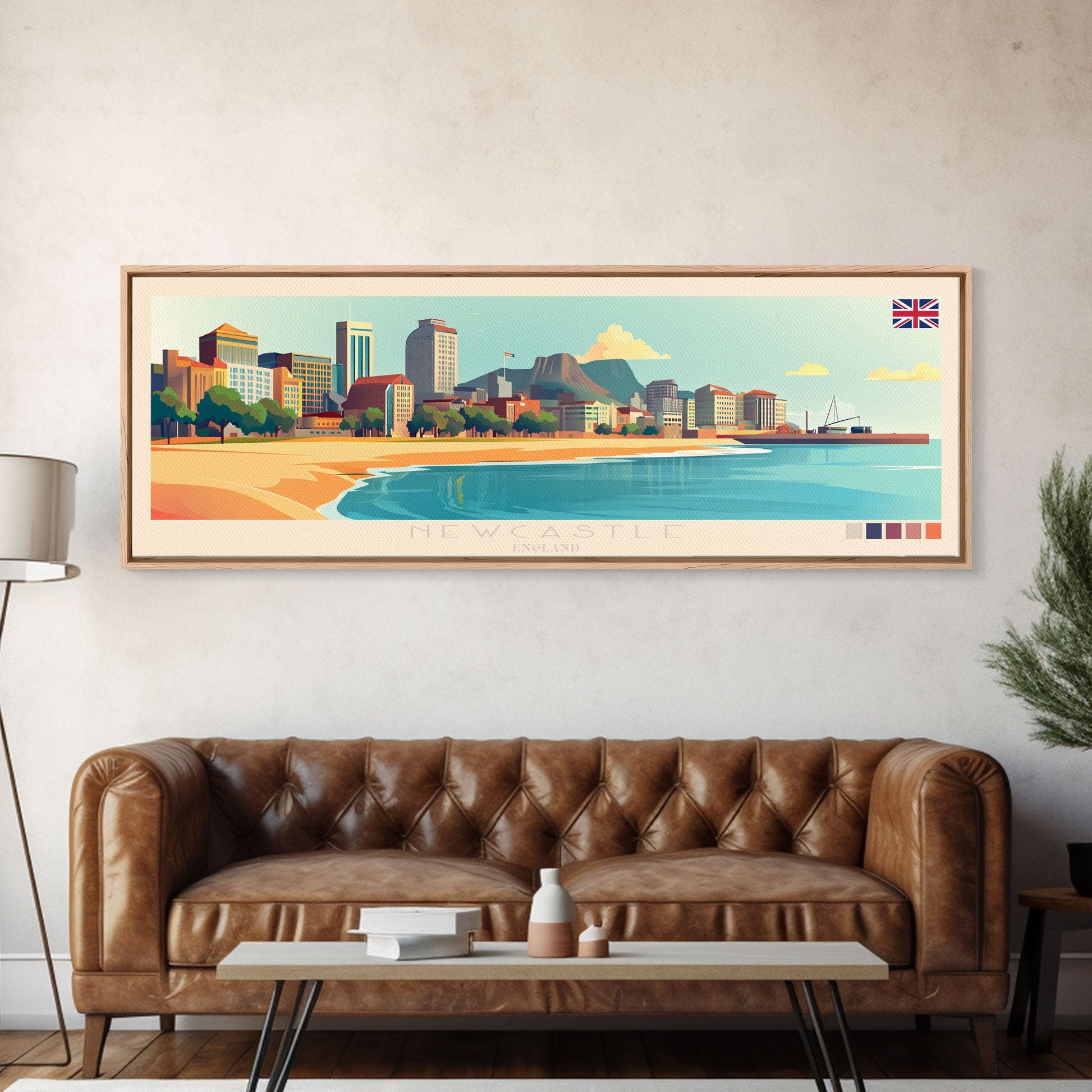 Newcastle, England Panoramic Travel Poster Canvas Print, Newcastle, England Painting, England Art, Newcastle Panoramic Travel Art, Travel Painting