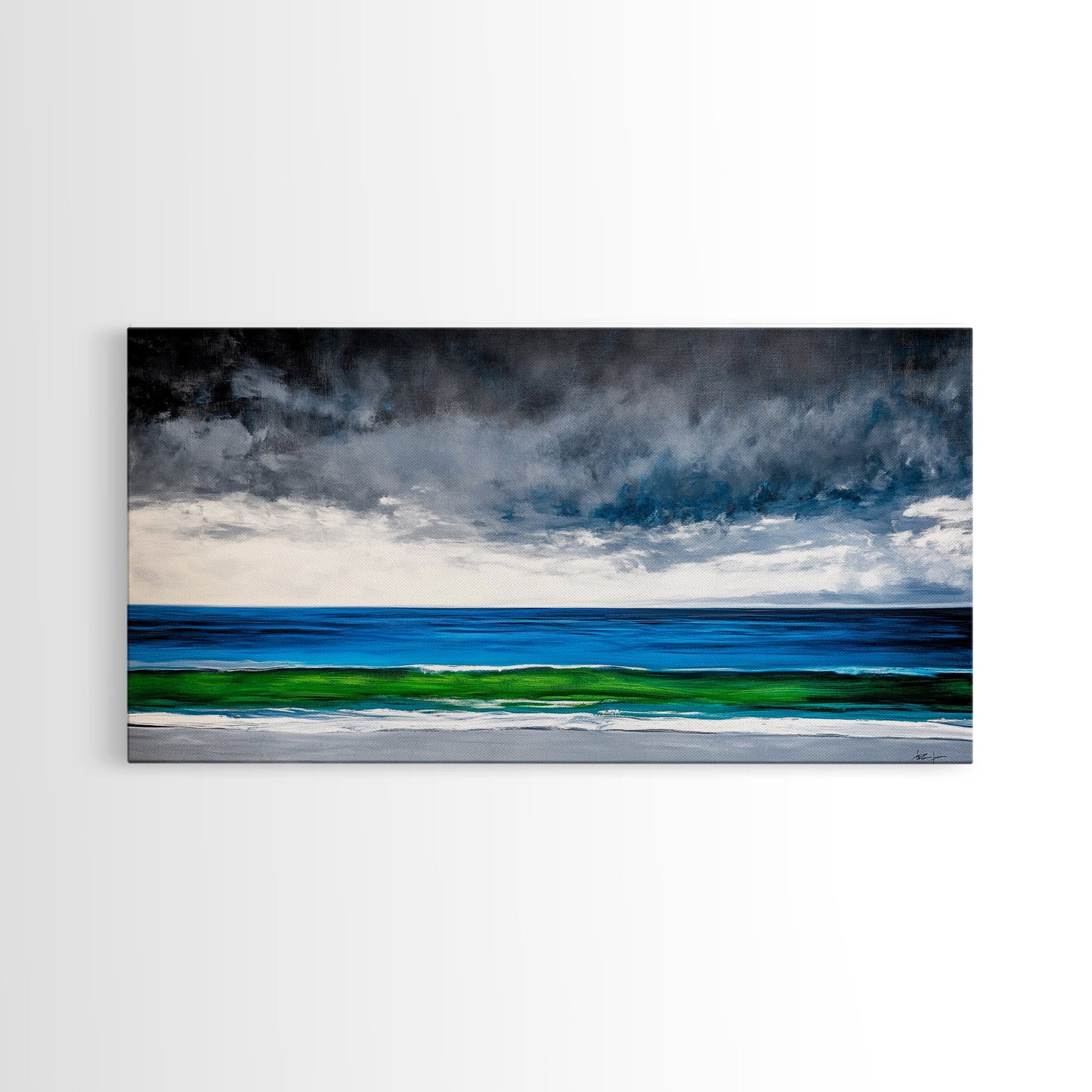 Ocean Horizon, Serene Seascape, Deep Blue, Coastal Wall Art, Minimalist Nature, Framed Canvas Print, Office Decor, Modern Beach Painting