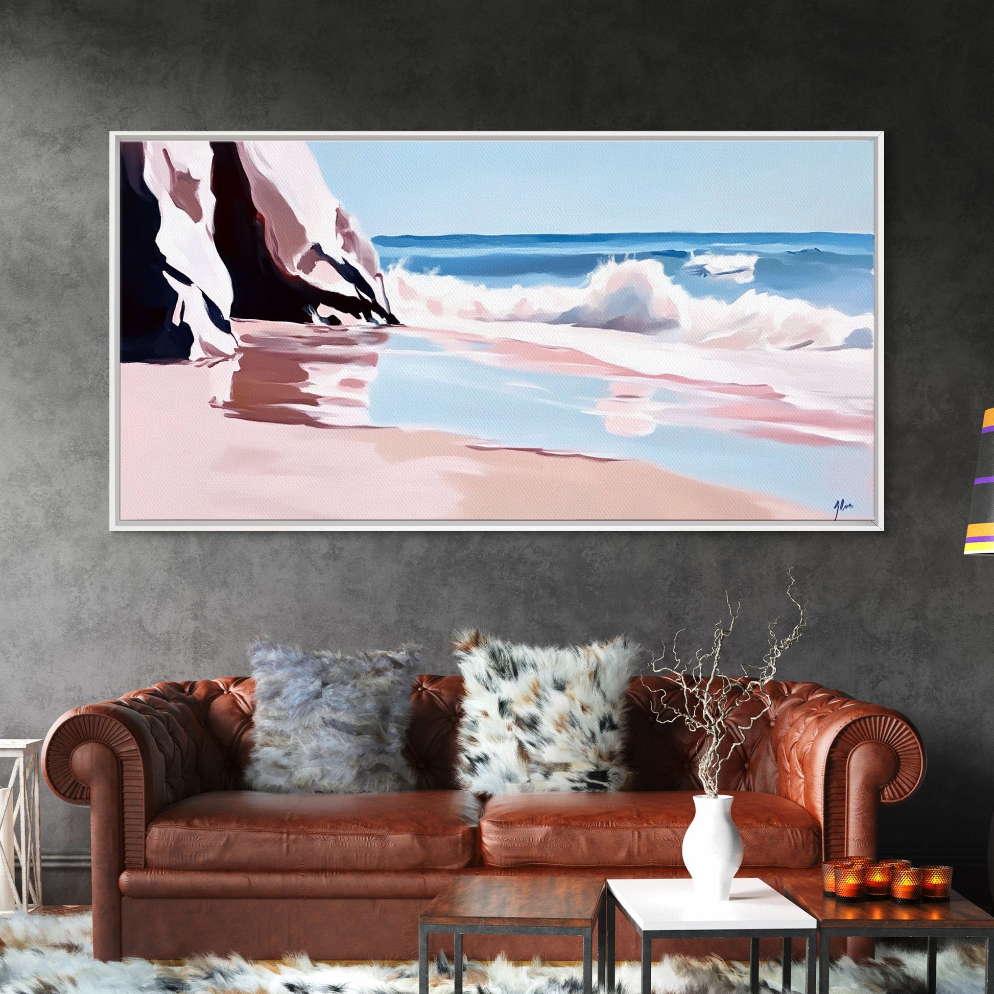 Ocean Waves, Seascape Painting, Beach Aesthetic, Coastal Home Art, Relaxing Seashore, Minimalist Art, Canvas Print, Bathroom Decor