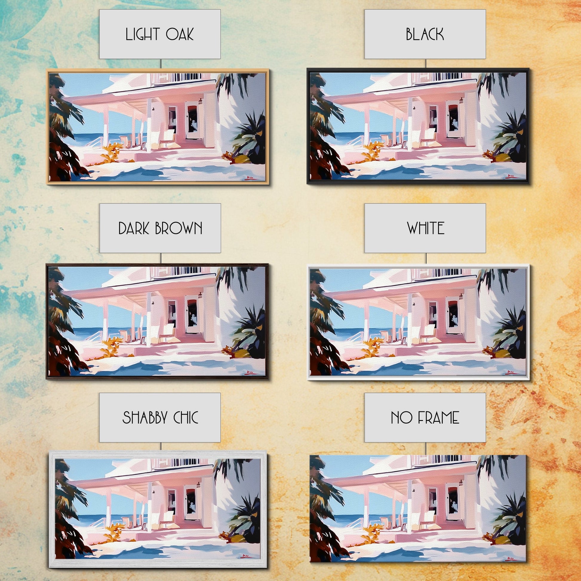 Oceanfront Porch, Coastal Home, Beach House, Seaside Retreat, Summer Vibes, Blue Wall Art, Nautical Style, Modern Decor, Framed Canvas Print