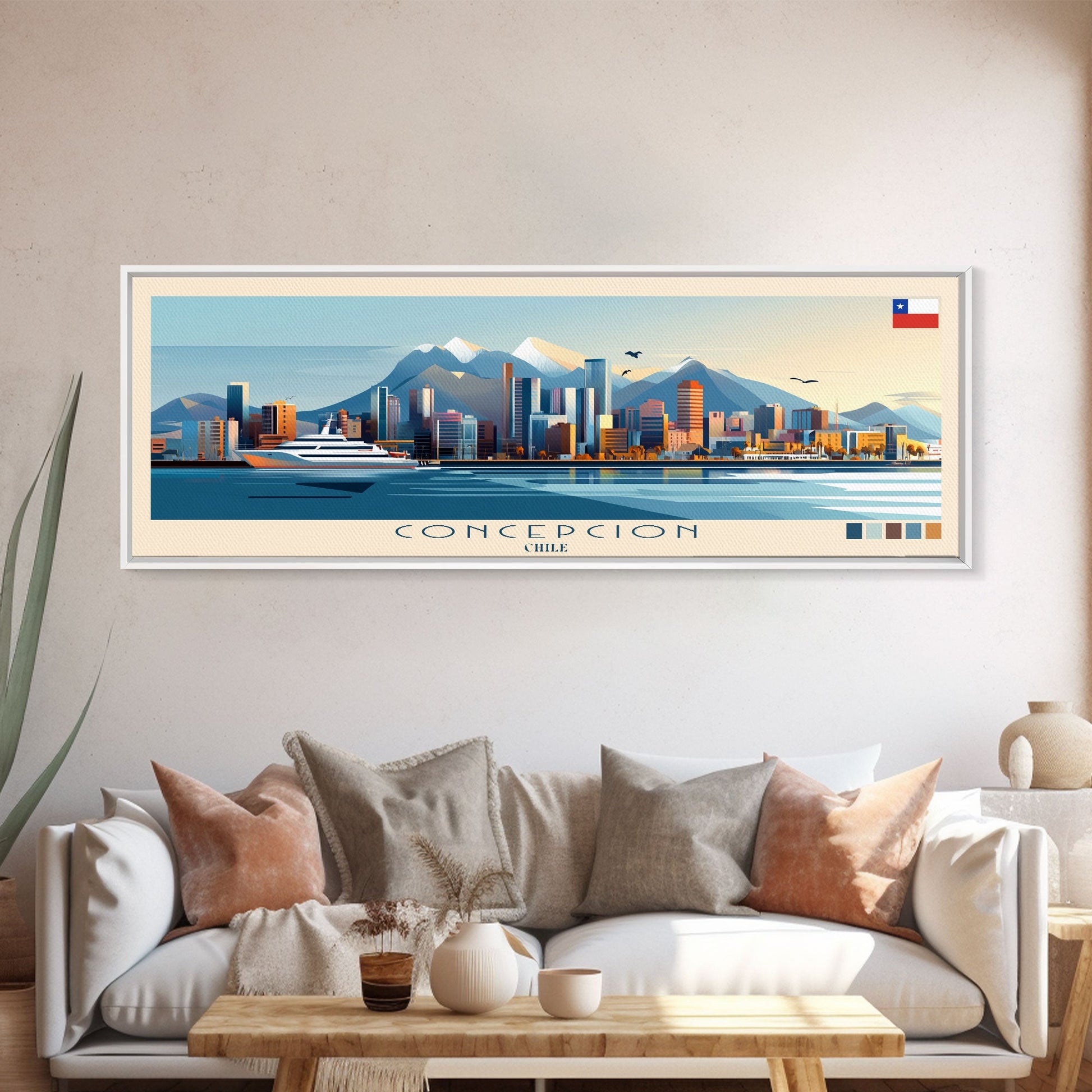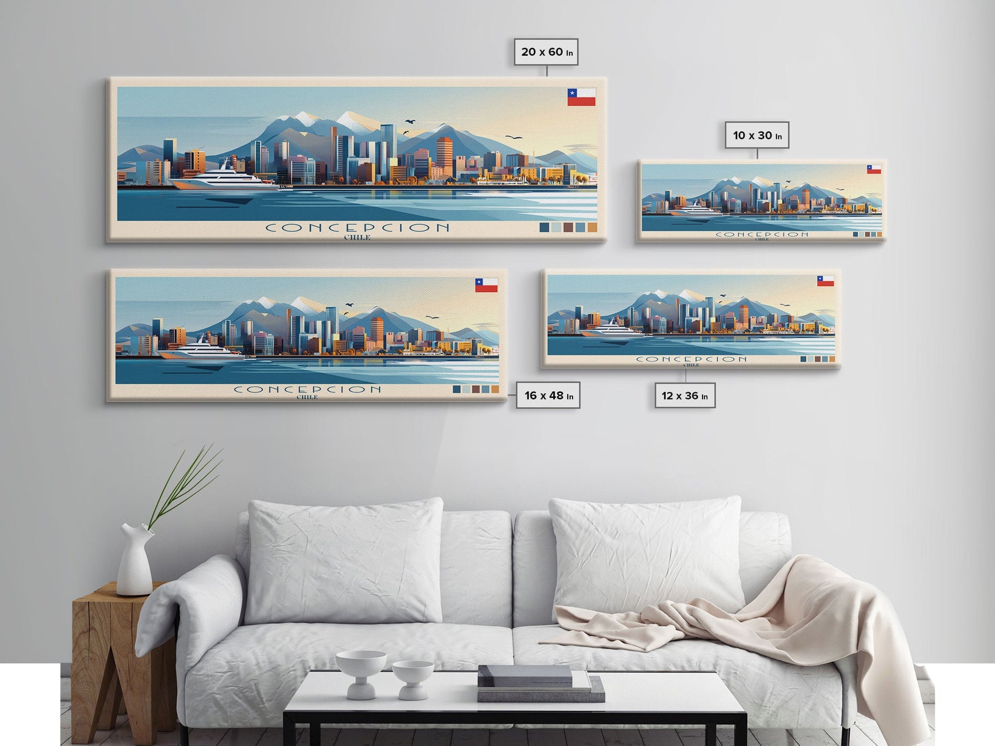 Panoramic Travel Poster Concepcion, Chile Canvas Print, Concepcion, Chile Painting, Chile Art, Concepcion Travel Art, Guest Room Painting