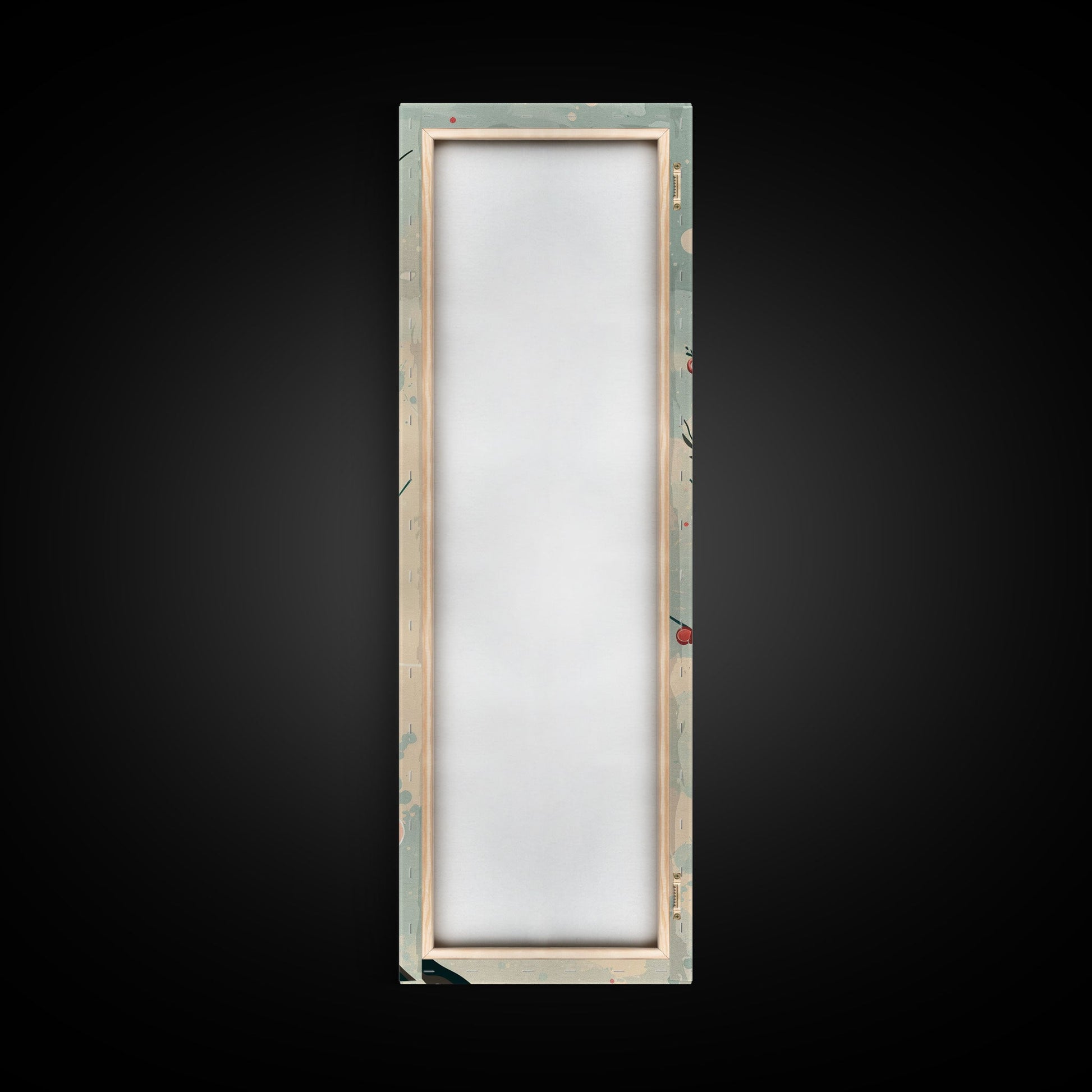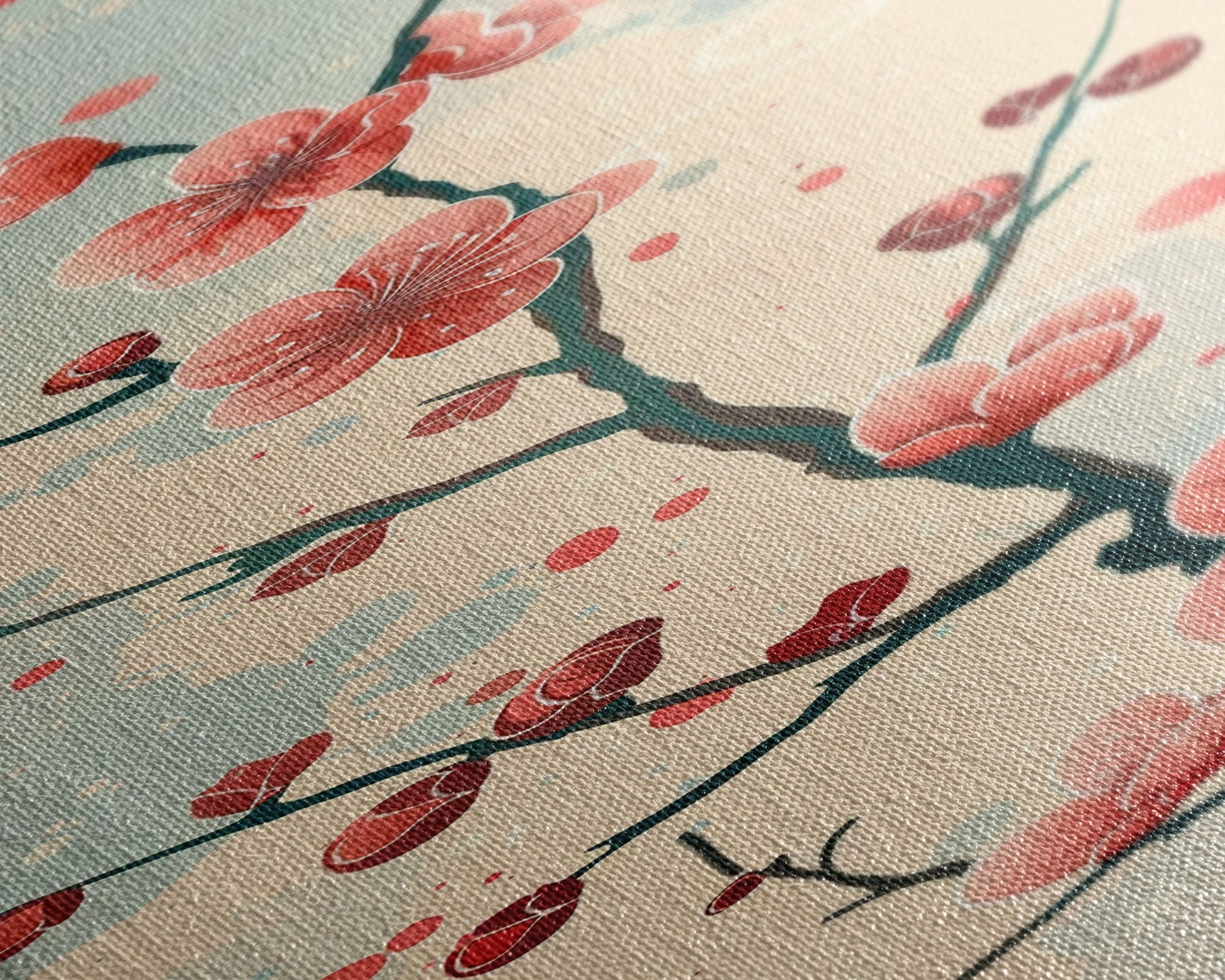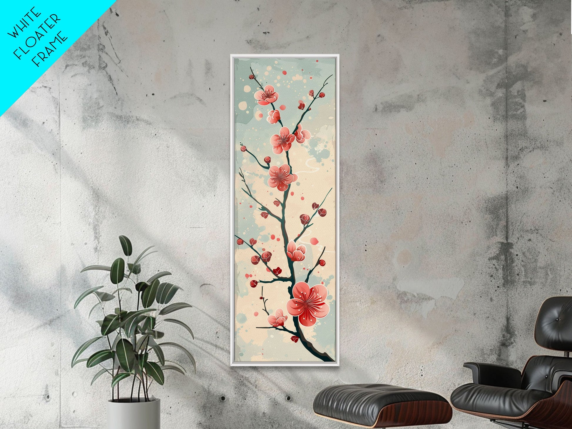 Peach Blossoms On Branch With Soft Pastel Background Tall Art Skinny Art Framed Canvas Print Japanese Style Art Ukiyo-e Wood Block Print