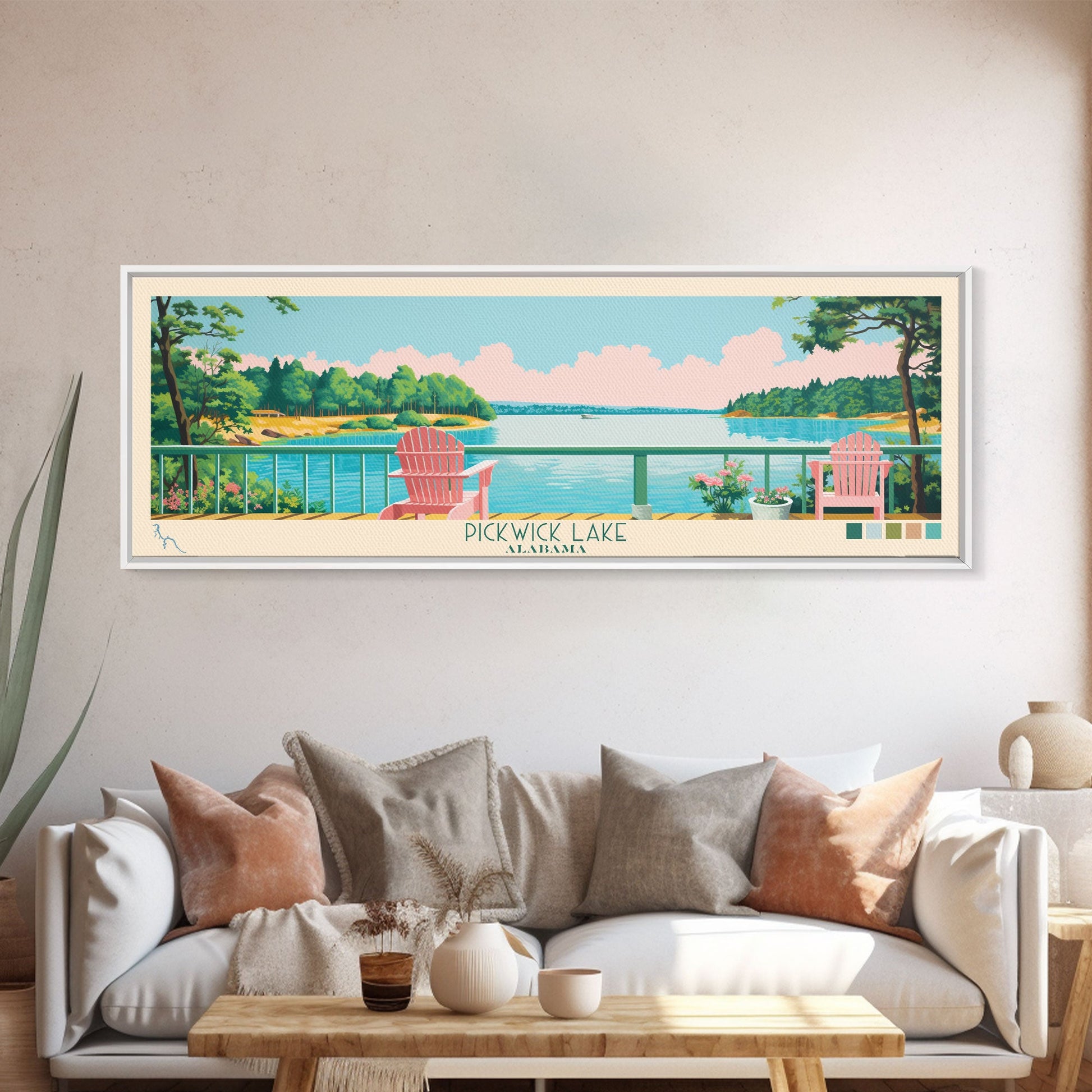 Pickwick Lake, Alabama Framed Canvas Print, Home Decor, Midcentury Modern Art, Panoramic Travel Poster, Wall Art, Pop Art