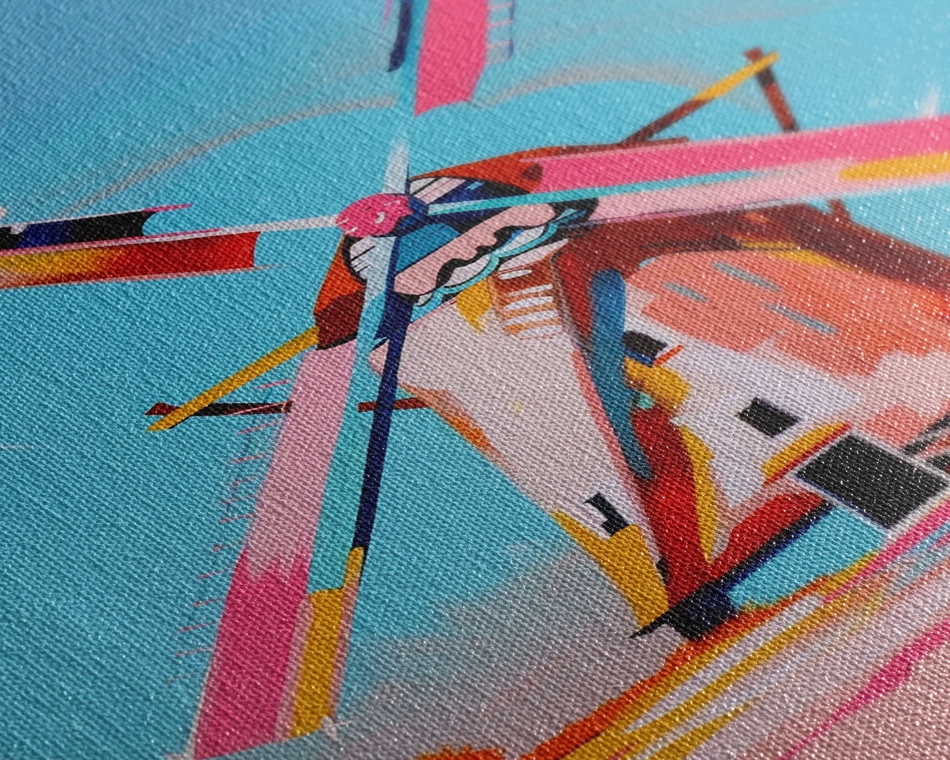 Playful Windmill Canvas Art - Framed Canvas Print, Modern Farmhouse Decor, Bright Windmill Wall Art, Vibrant Bedroom Artwork
