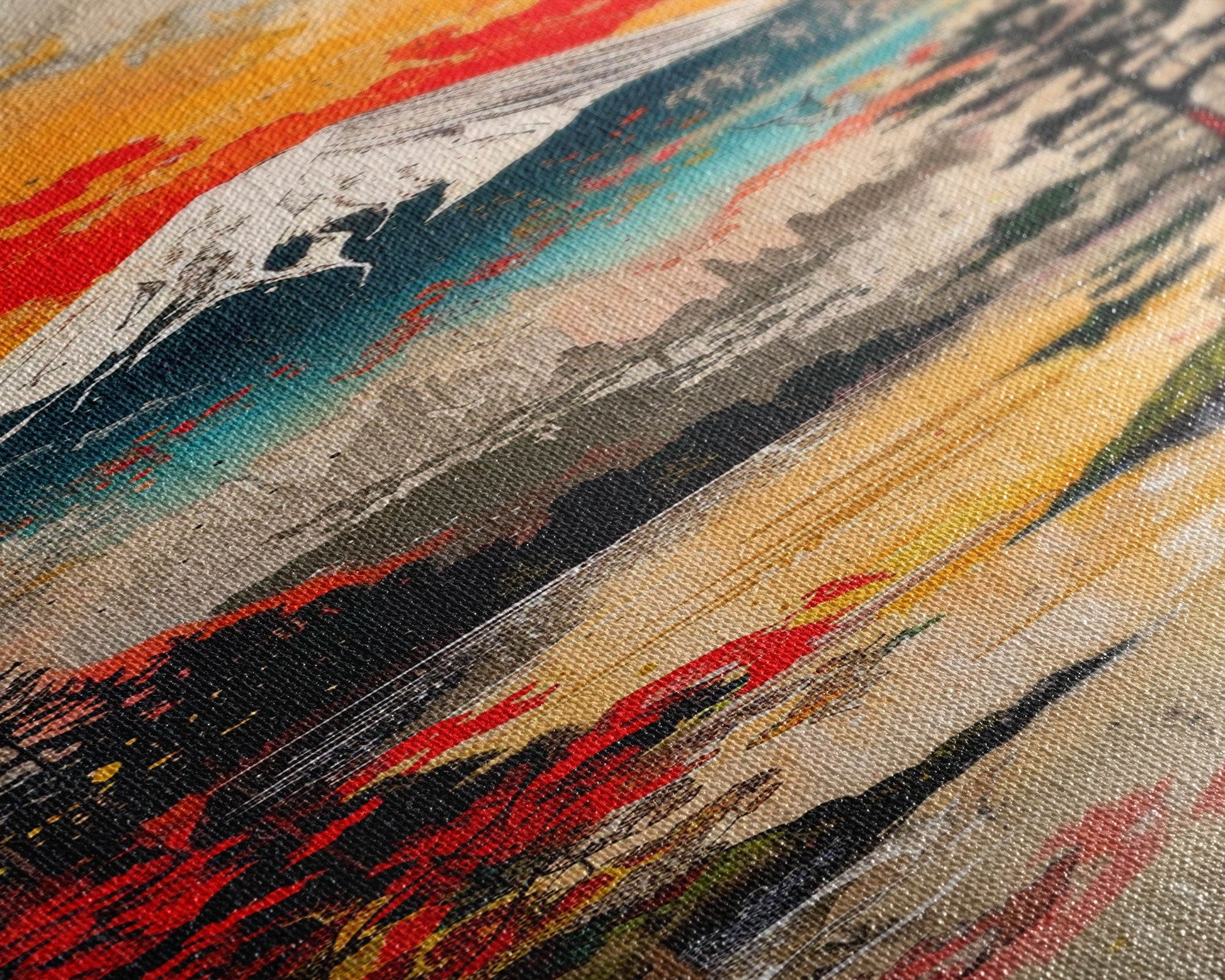 Most of our canvases are made in the USA, with the exception of canvases ordered with the light oak unstained frames, and any large canvases (24x48, 30x60, 16x48 and 20x60) ordered WITH a frame. These are temporarily made in and shipped from Europe, while we try to find a more consistent supplier in the USA.