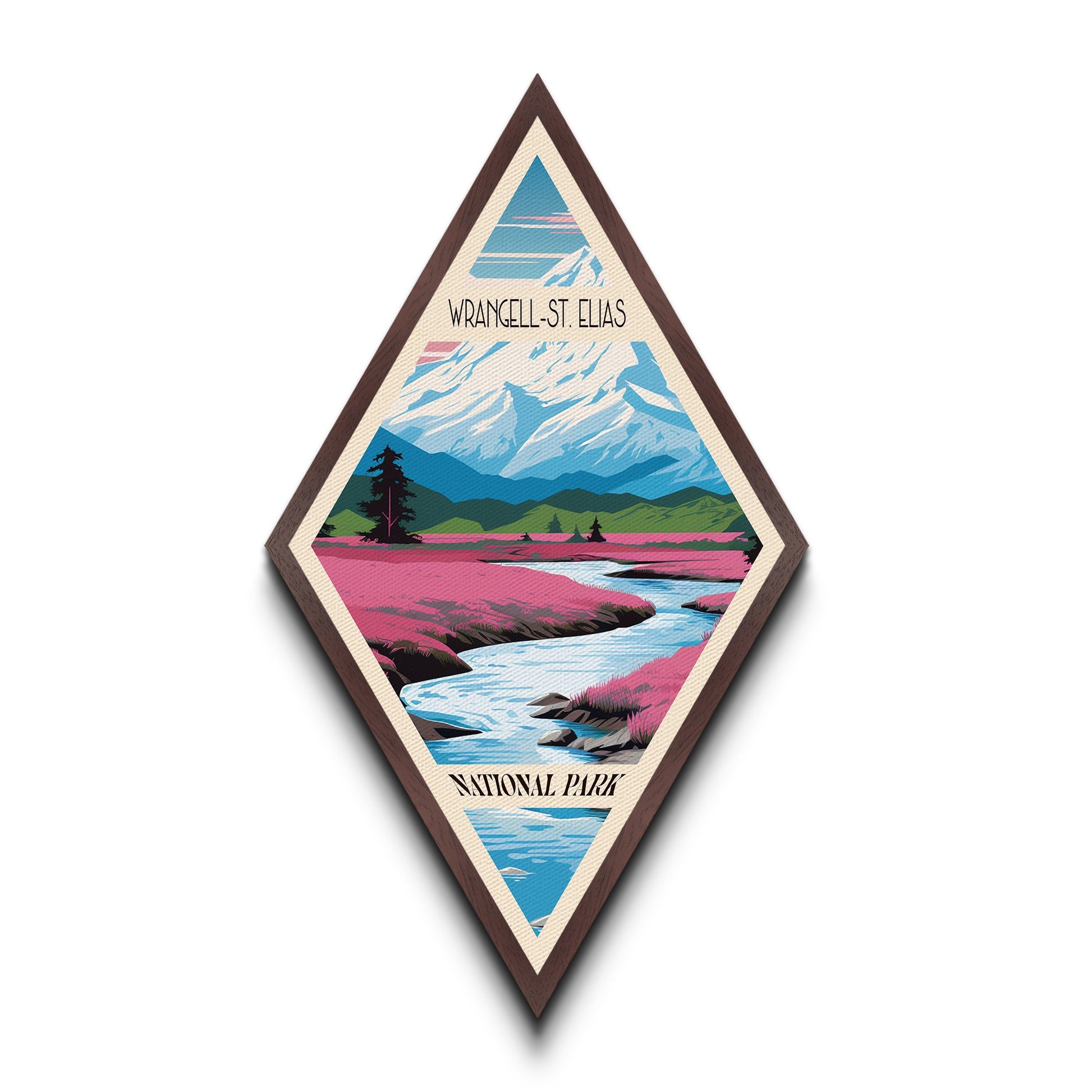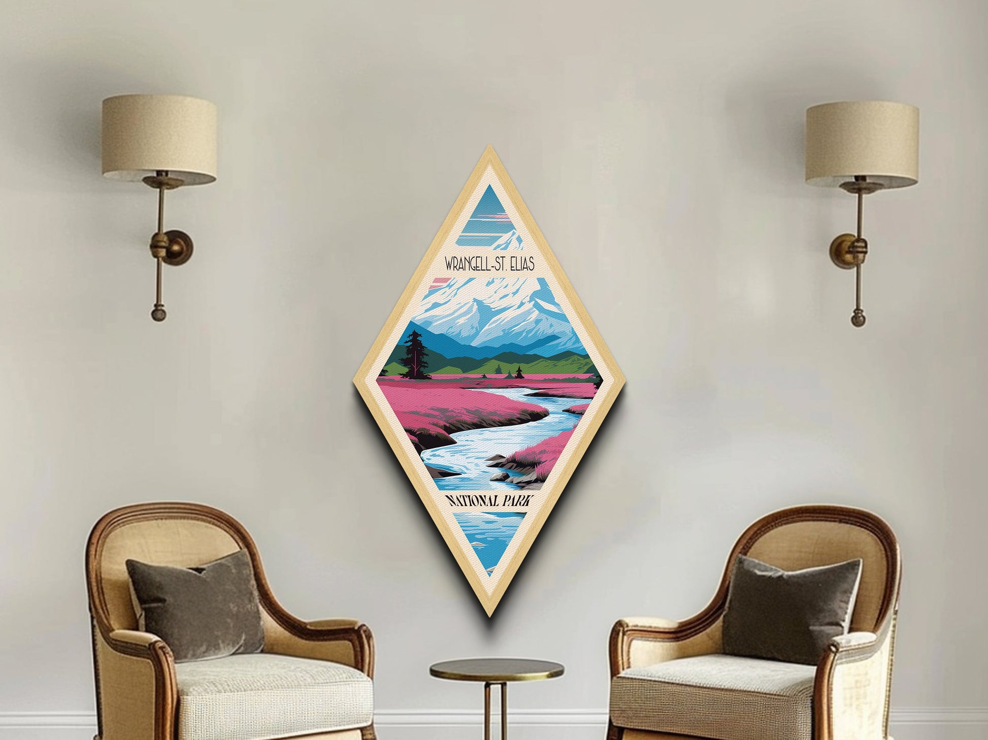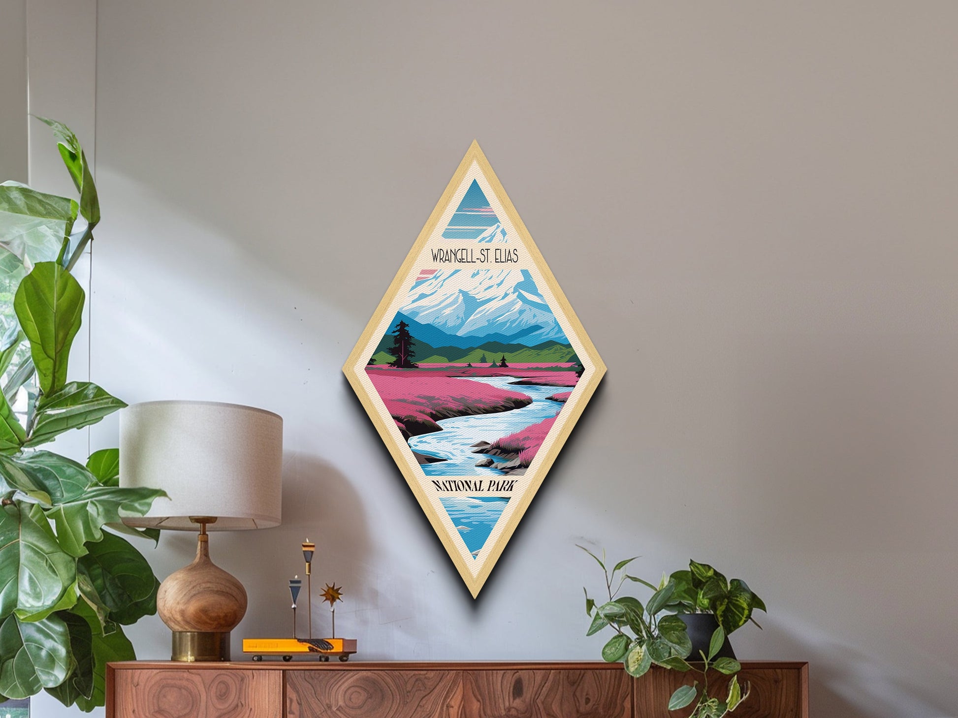 Retro Wrangell-St. Elias National Park Travel Poster Canvas Texture Print, Travel Decor Artwork, Midcentury Modern Decor Alaska Travel Art