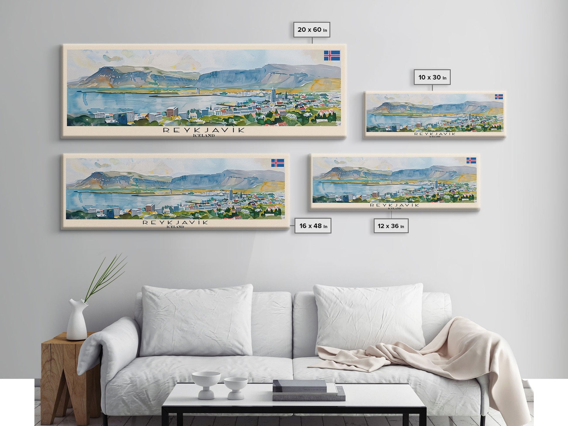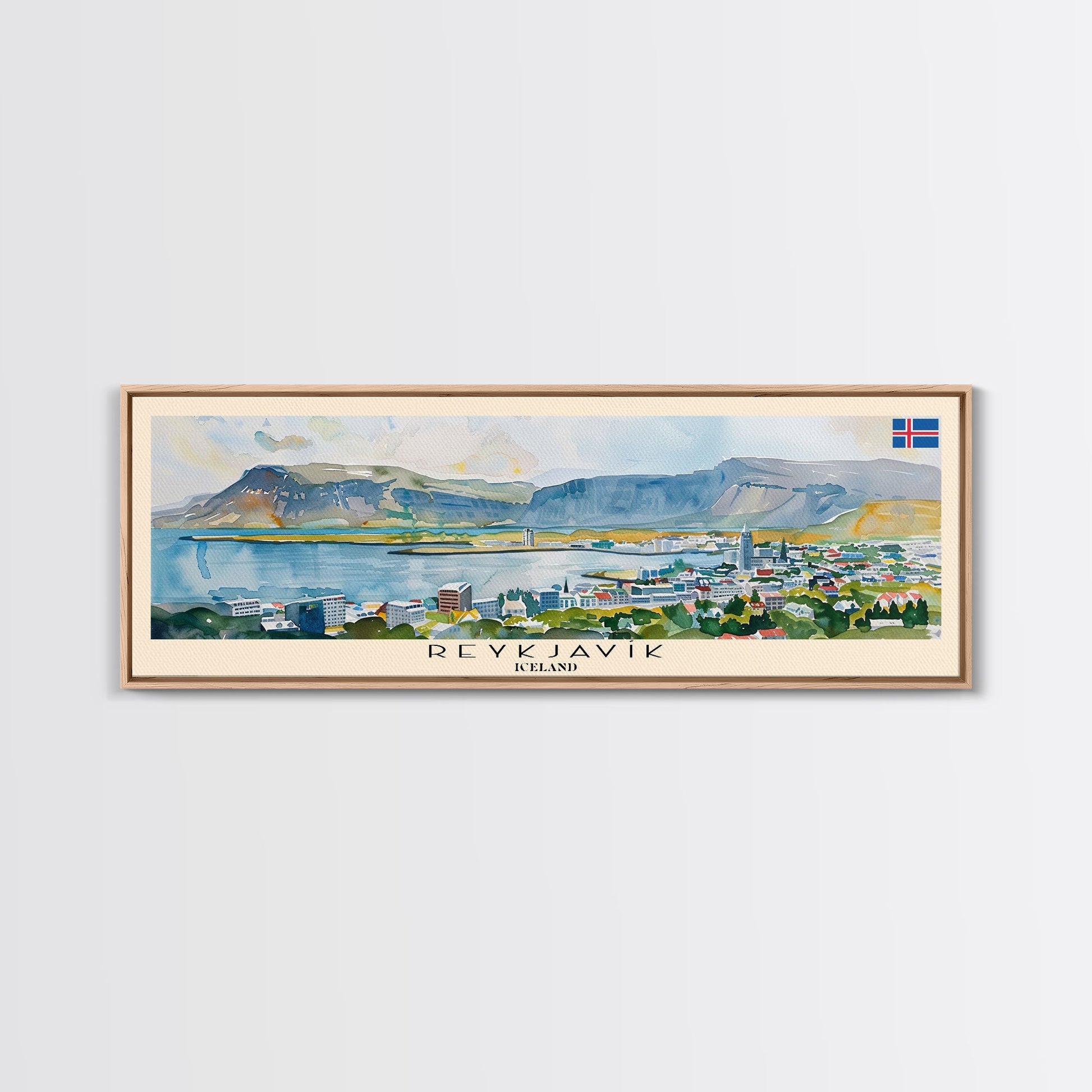 Reykjavik Iceland Wall Art, Panoramic Travel Poster, Panoramic Framed Canvas Print, City Wall Art, Wall Hanging Home Decor, Travel Art