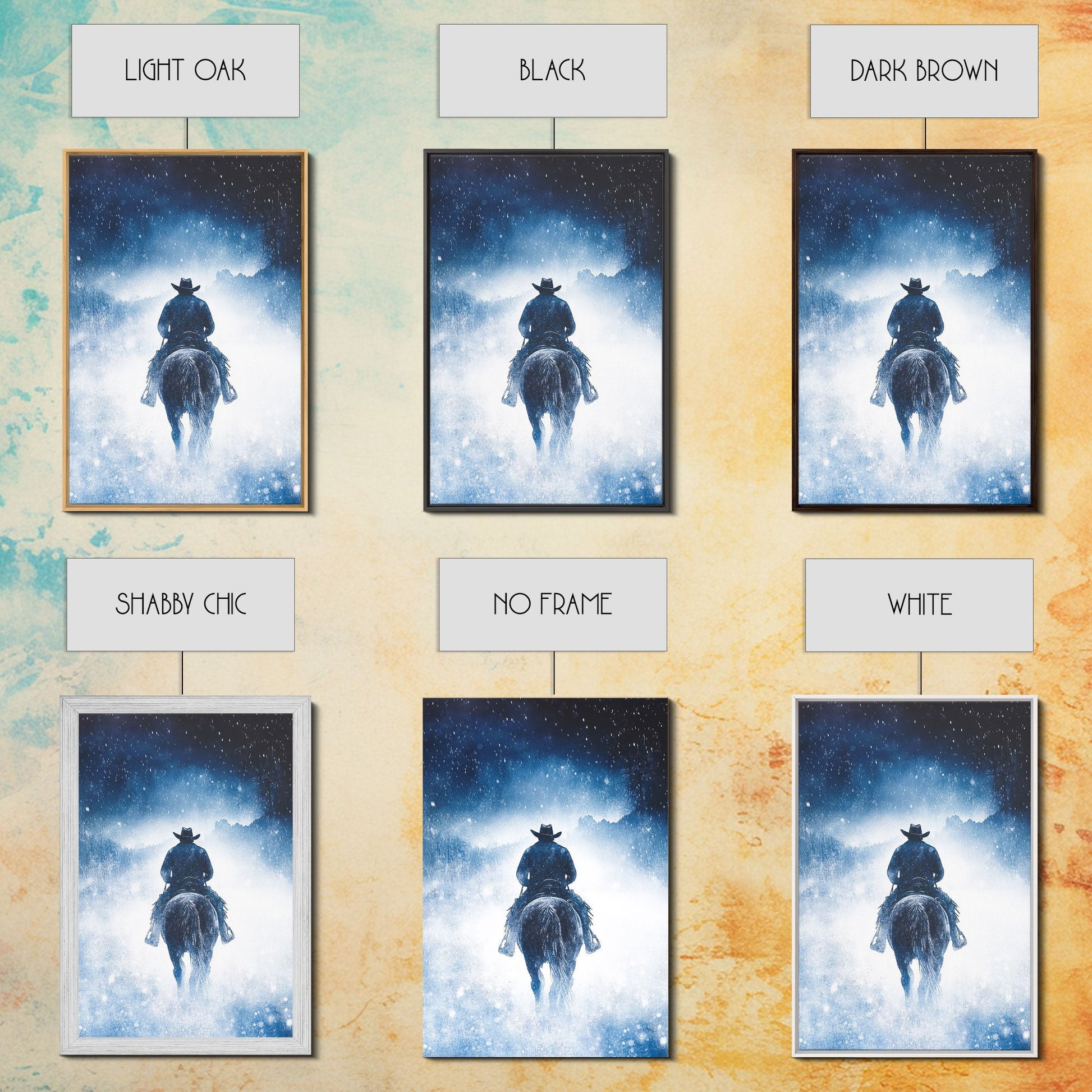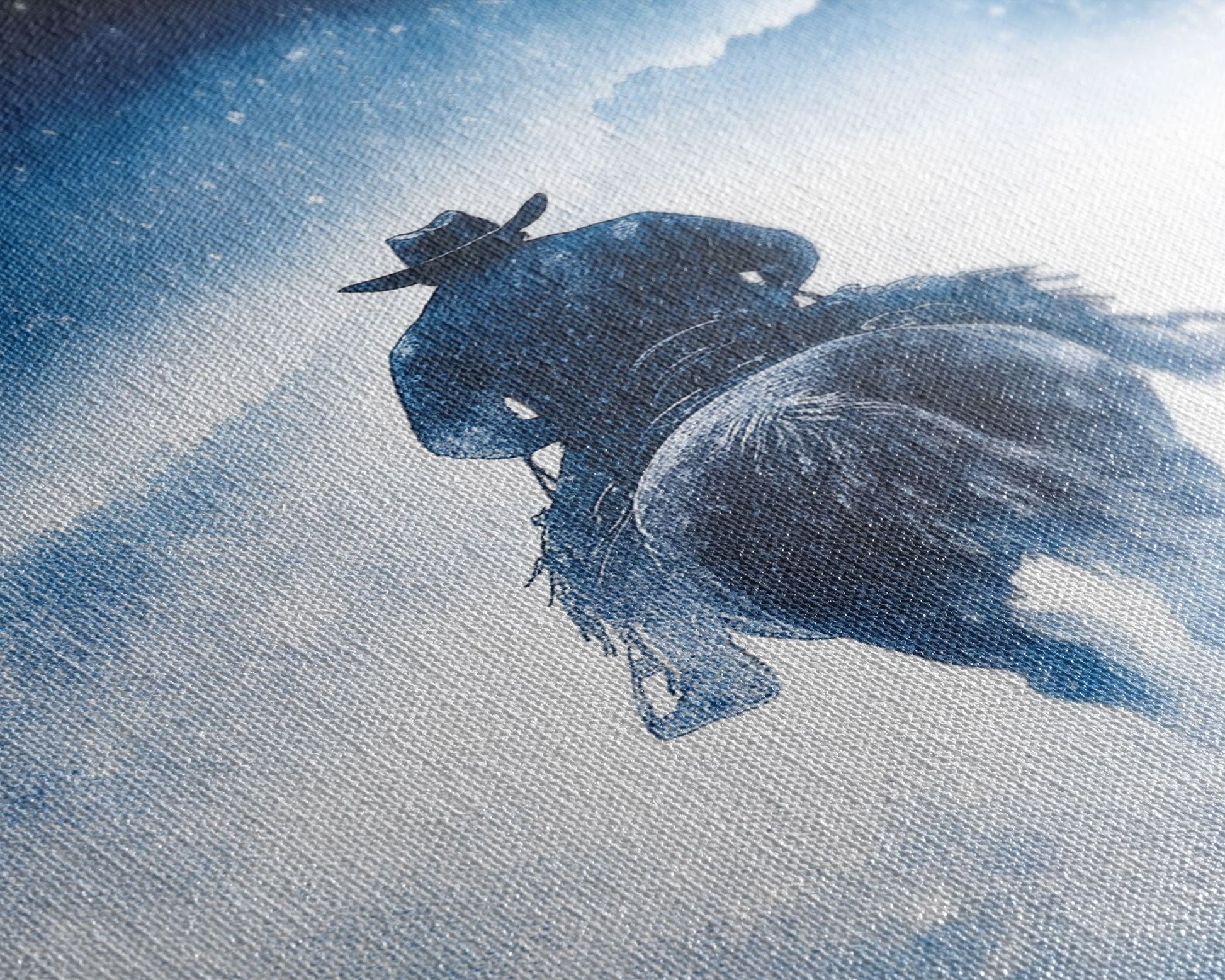 Rider In The Snow Storm, Framed Canvas Print, Western Winter Landscape Painting, Winter Wonderland Art
