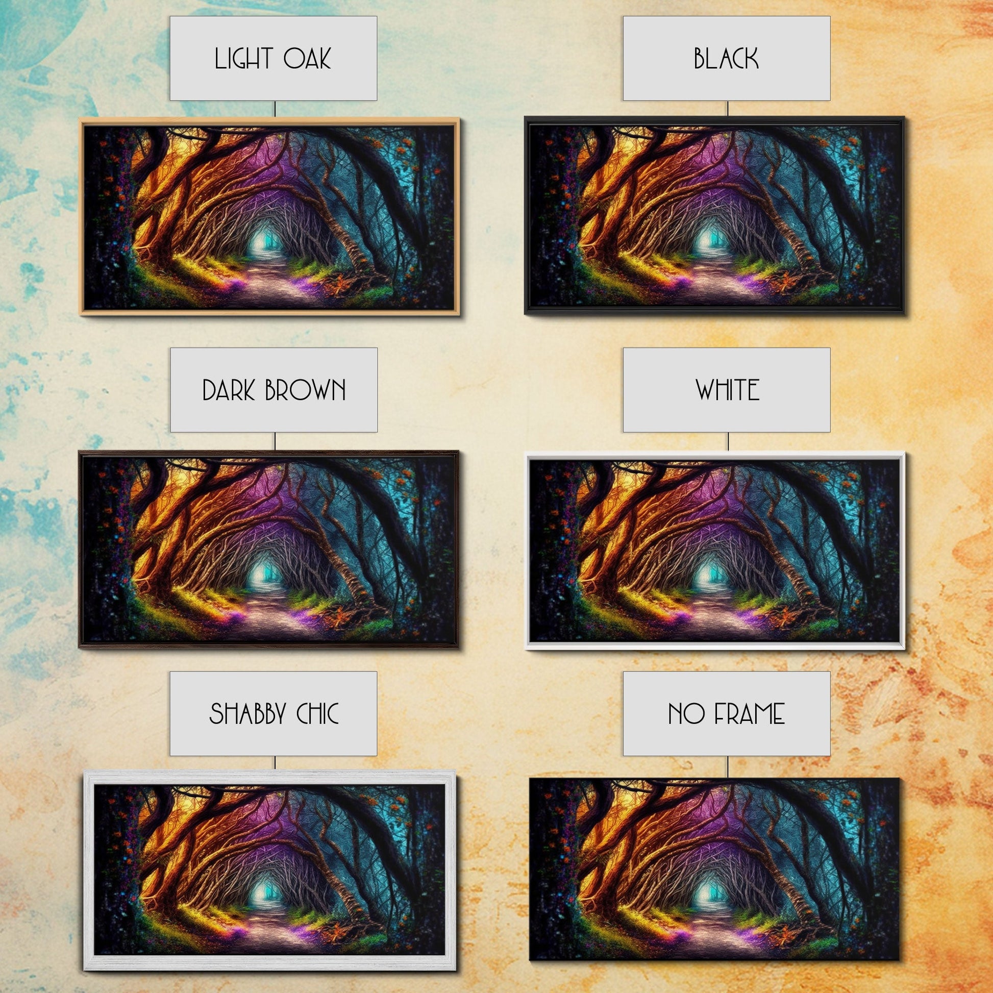 Secret Path, Fantasy Art, Pop Art Forest Landscape, Framed Canvas Print, Colorful Forest Painting, Living Room Art, Glowing Magical Forest