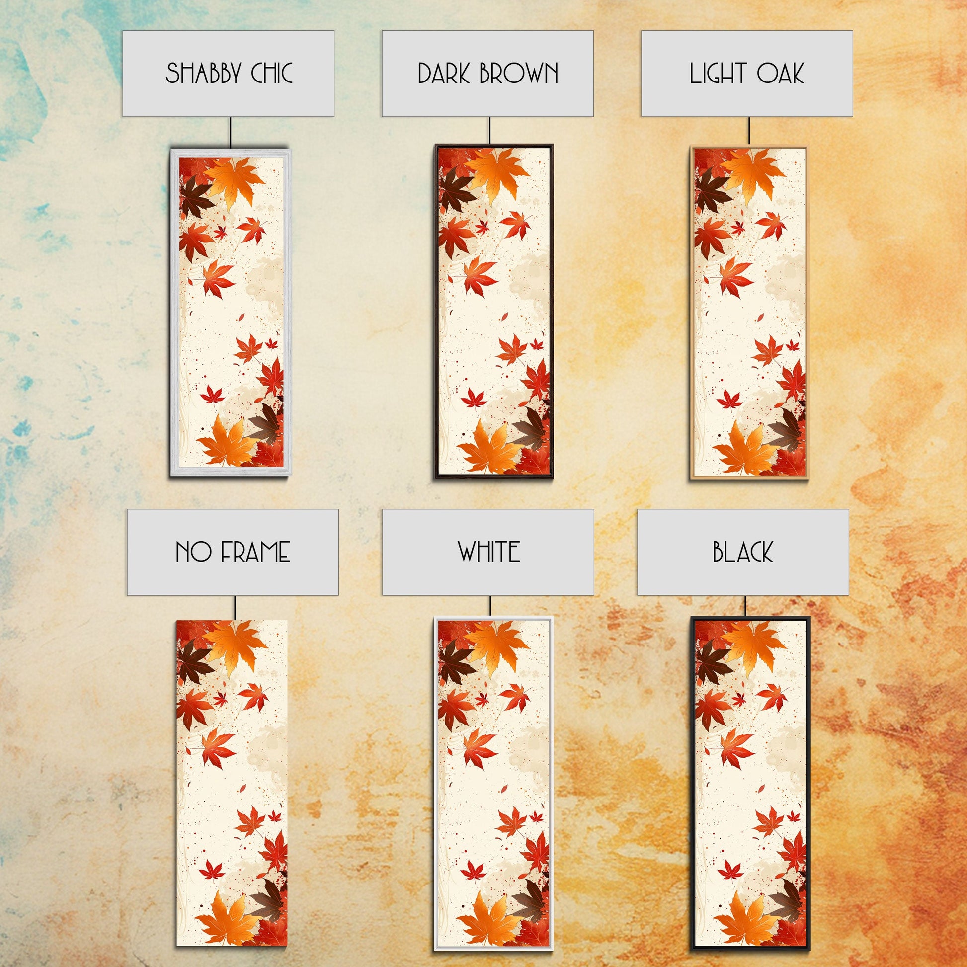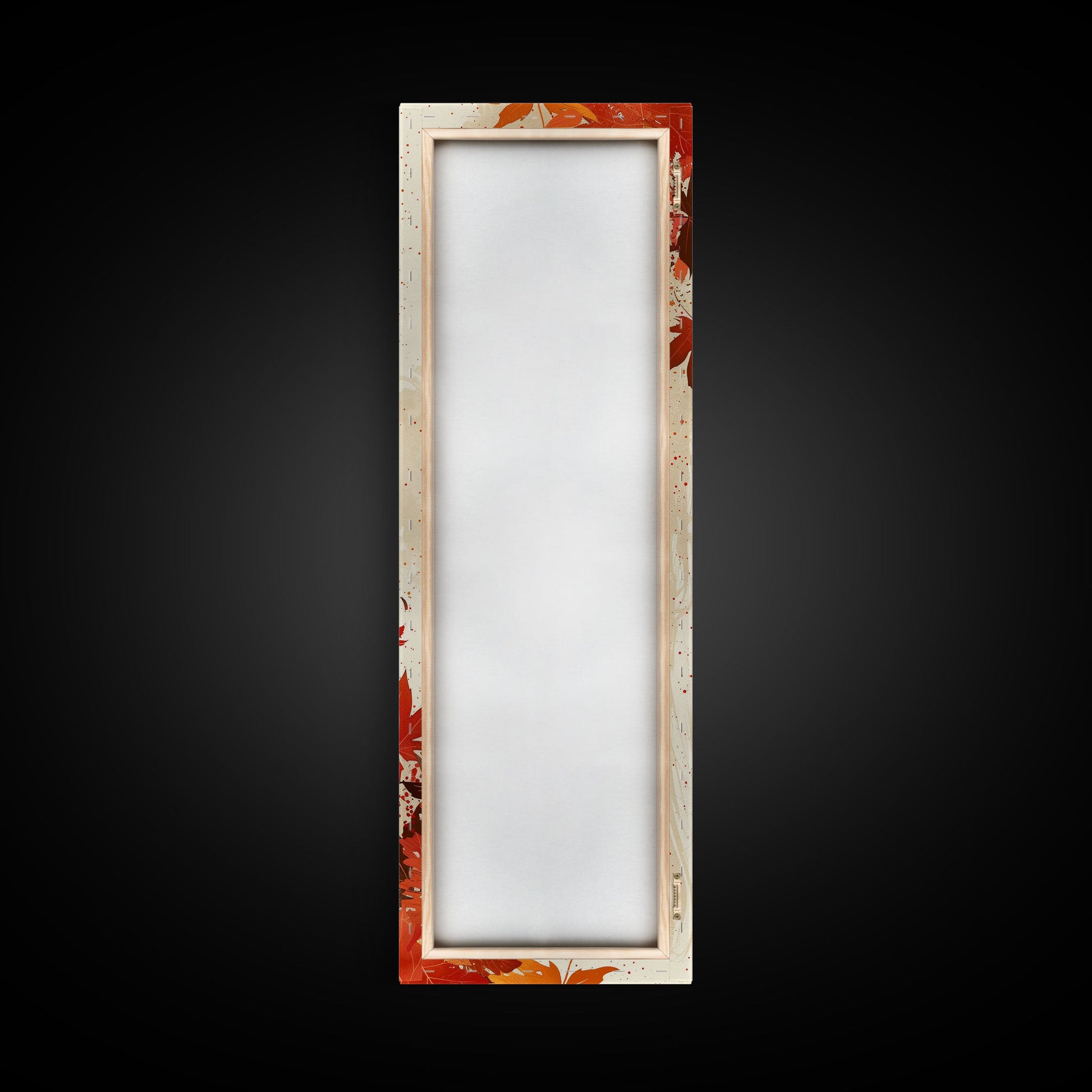 Skinny Art Autumn Leaves In Japanese Style Wood Block Print Warm Red And Orange Tones On Framed Canvas Print, Tall Art Ukiyo-e