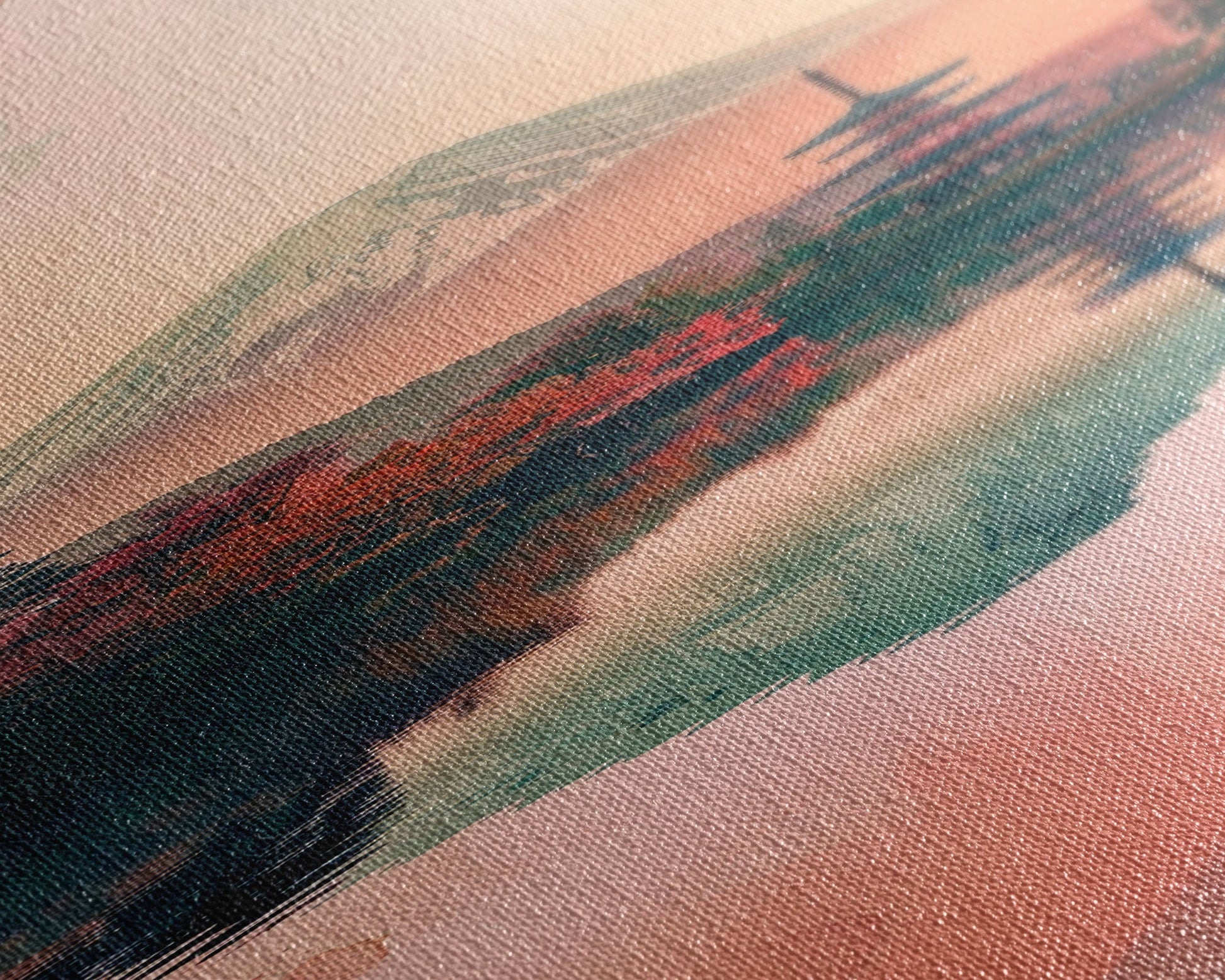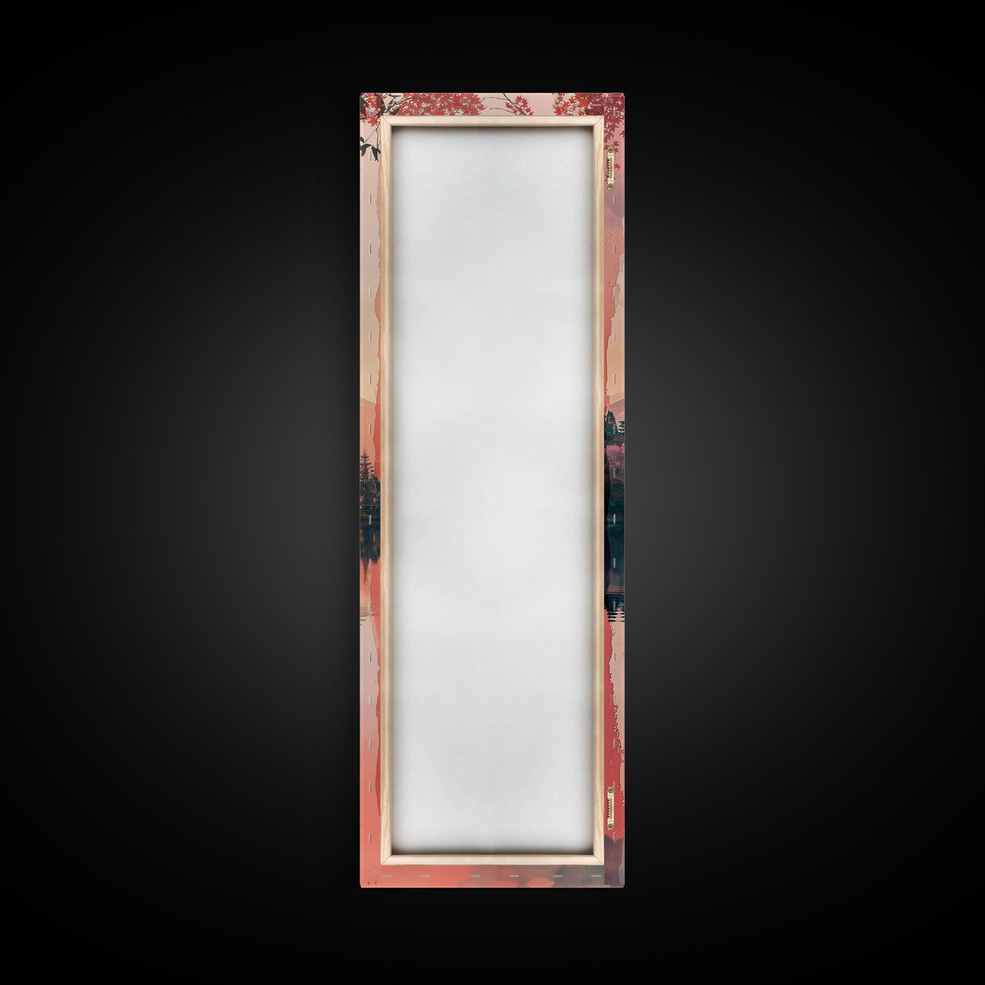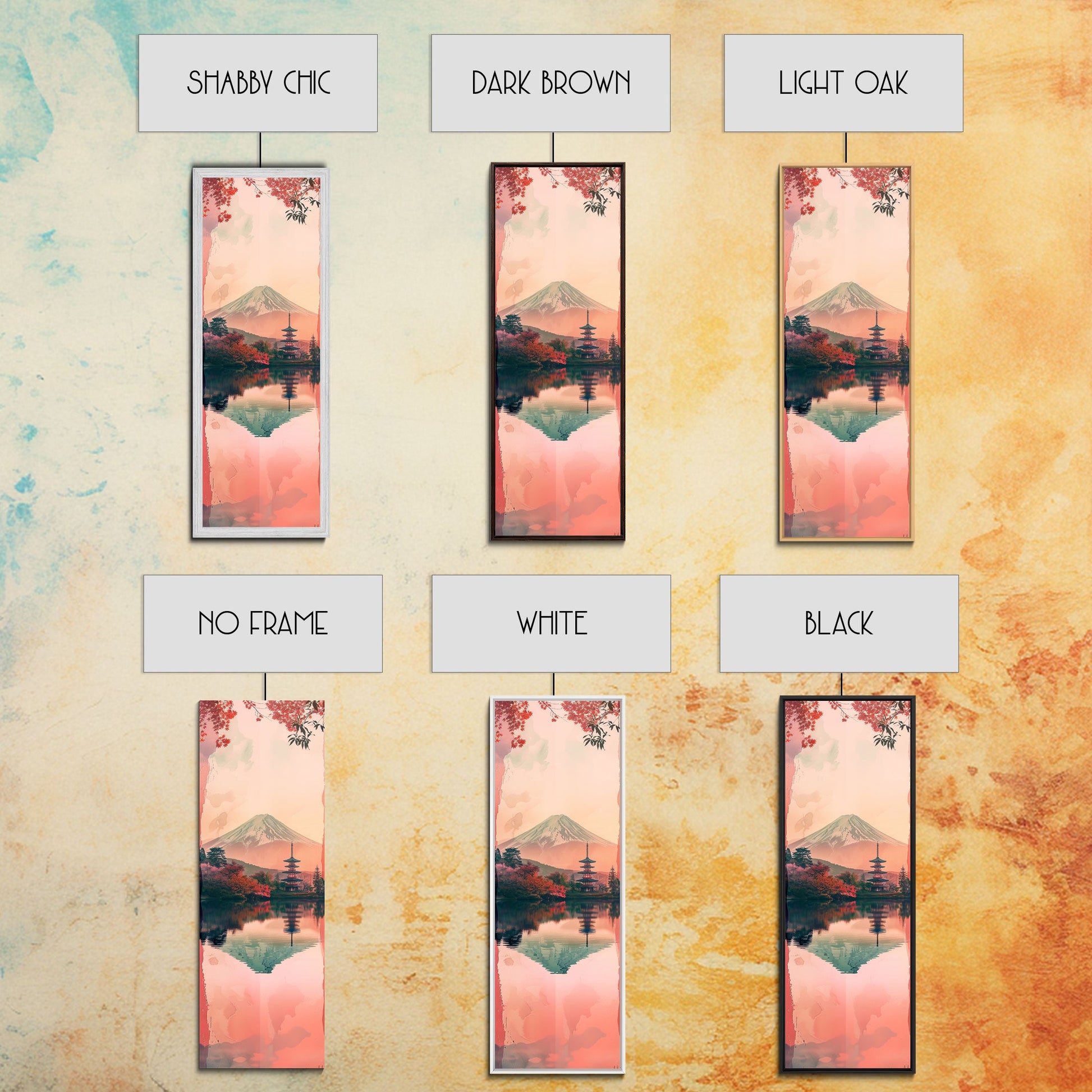 Skinny Art Tall Art Framed Canvas Print Japanese Style Art Mount Fuji Lake Reflection Red Maple Wood Block Print Ukiyo-e Feng Shui Wall Art