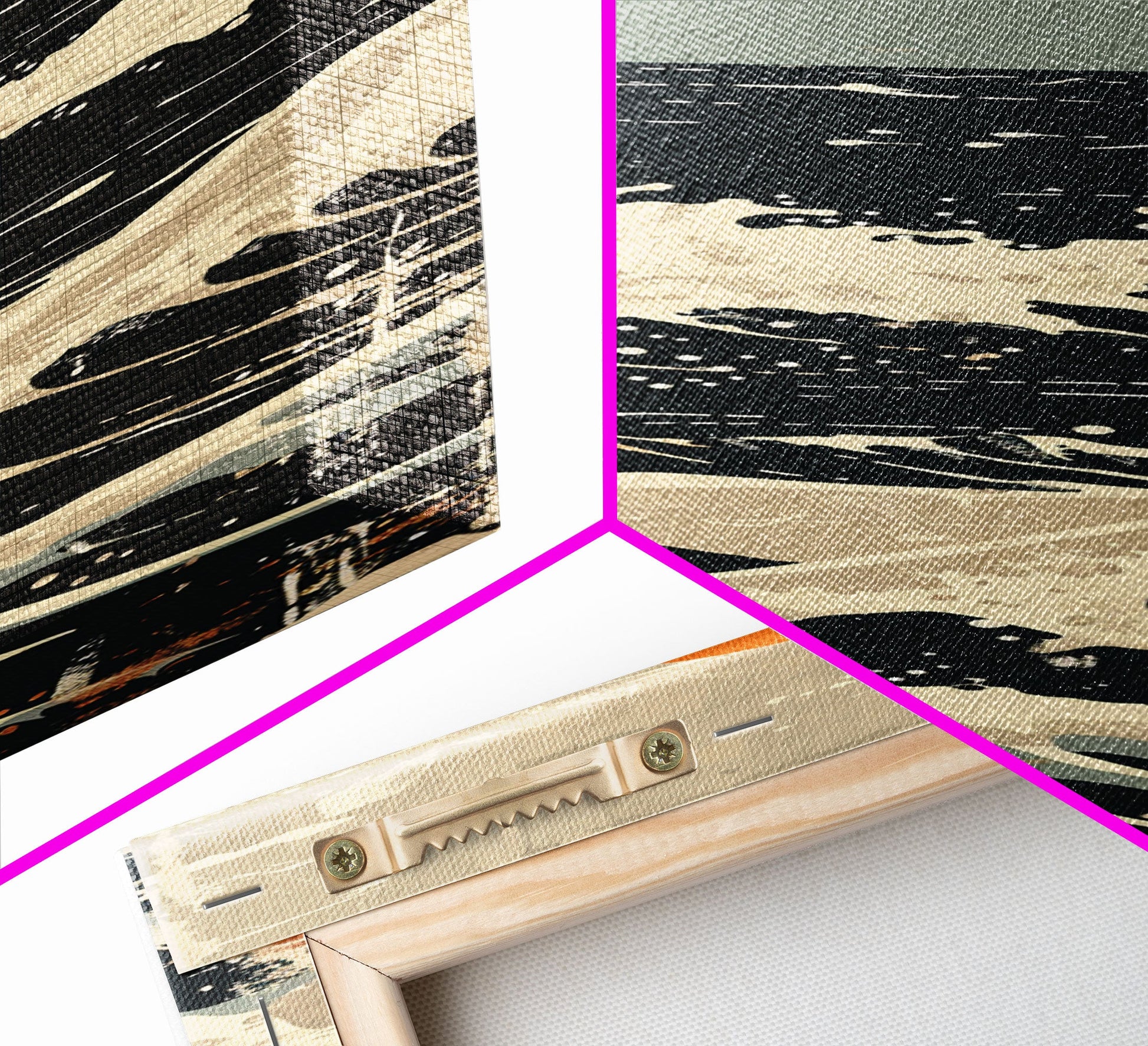Hello and thank you for taking the time to view our modern high quality giclée artwork! We offer both posters and stretched canvas prints. Our posters are printed on Ultra Matte 60 lb / 230 GSM high quality photo paper, with a thickness of 10 mil. Our canvases are printed on museum grade 350 GSM canvas material with ECO friendly archival grade ink, then hand stretched and stapled over premium, FSC certified and shrink resistant frames. Designed and built to last a lifetime.
