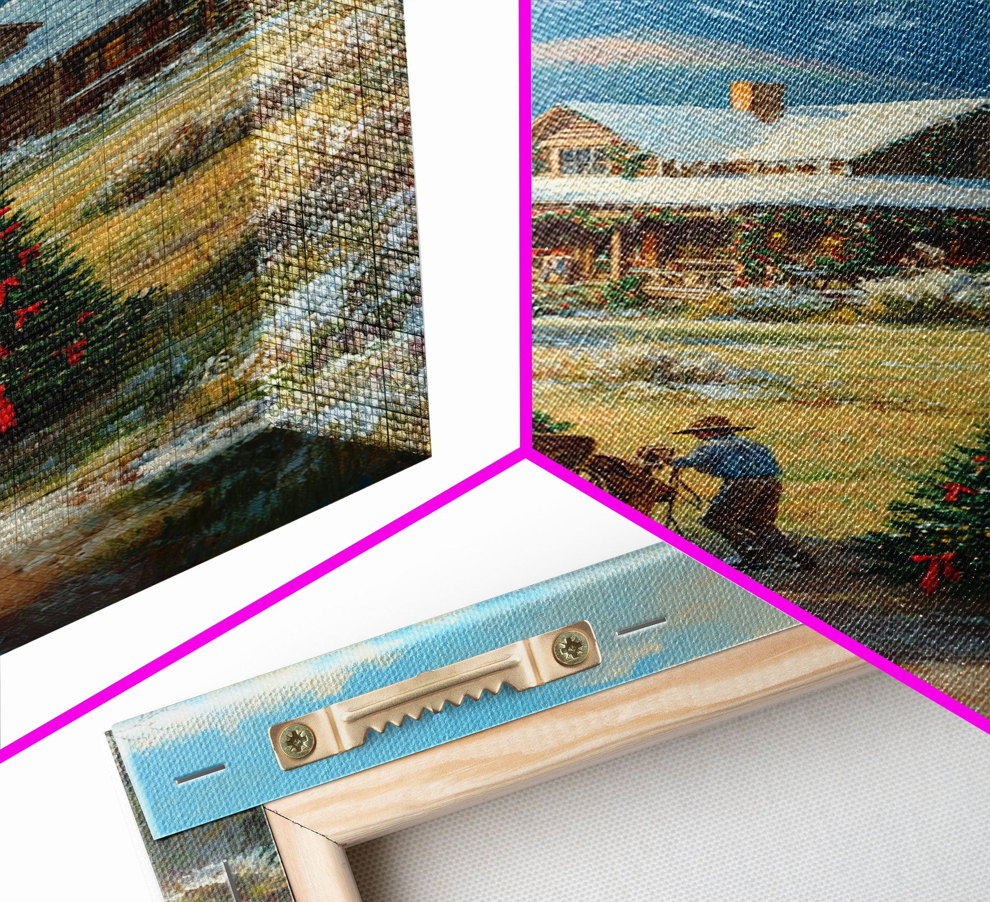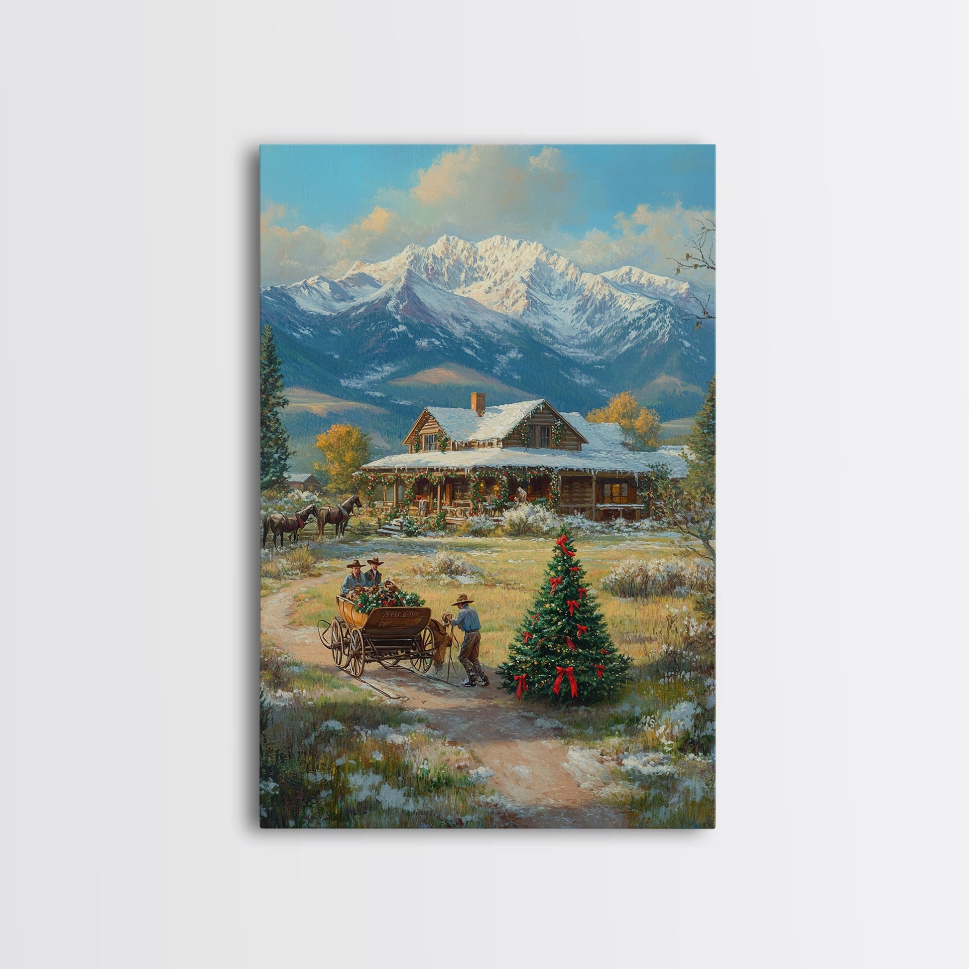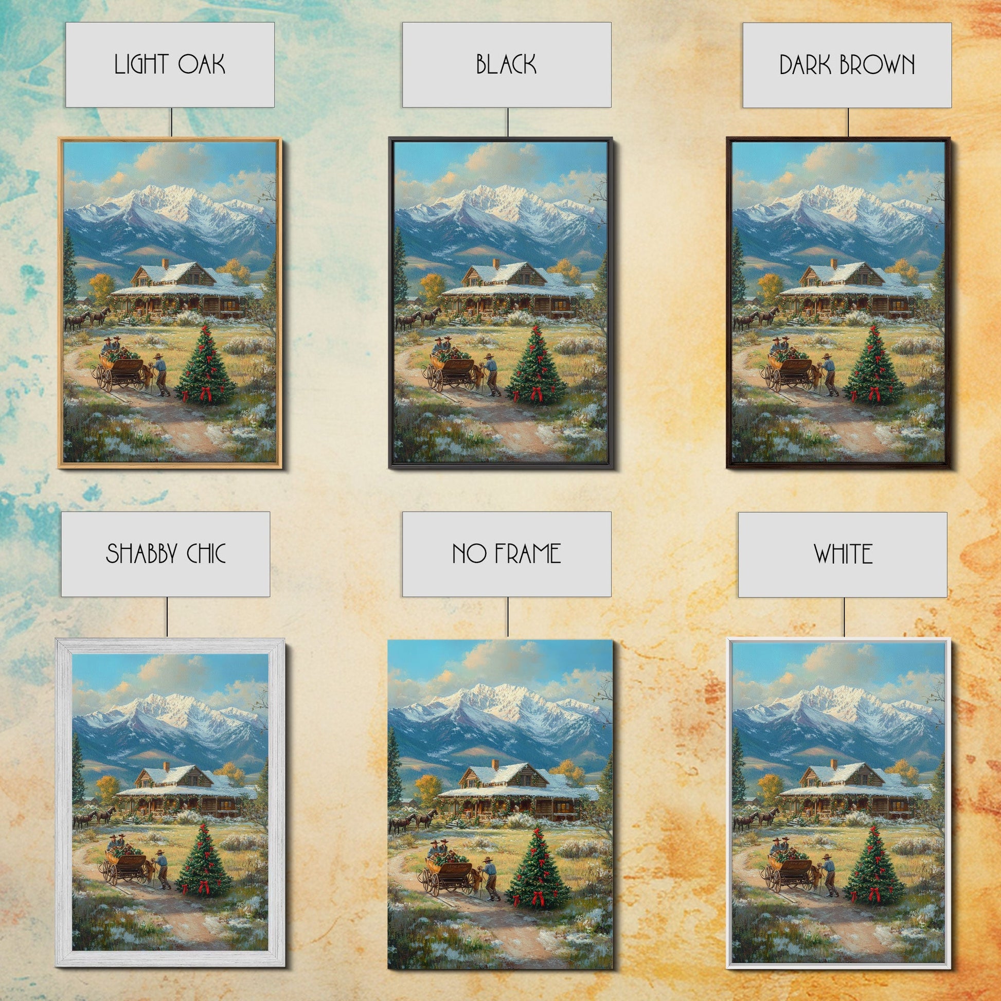 Snowy Mountain Cabin Christmas Tree Scene Framed Canvas Print Christmas Wall Art Holiday Decor Christmas Tree Art Winter Landscape Gift Idea