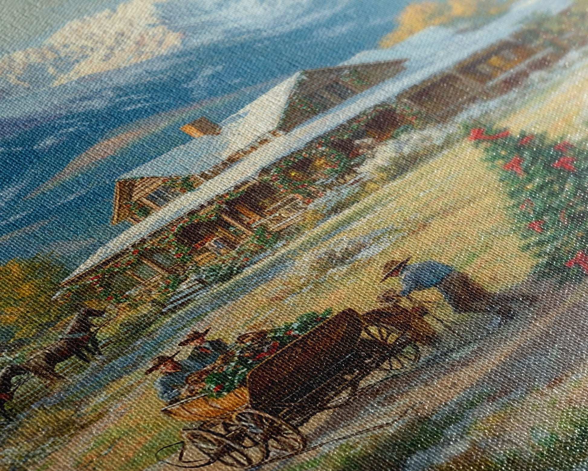 Most of our canvases are made in the USA, with the exception of canvases ordered with the light oak unstained frames, and any large canvases (24x48, 30x60, 16x48 and 20x60) ordered WITH a frame. These are temporarily made in and shipped from Europe, while we try to find a more consistent supplier in the USA.