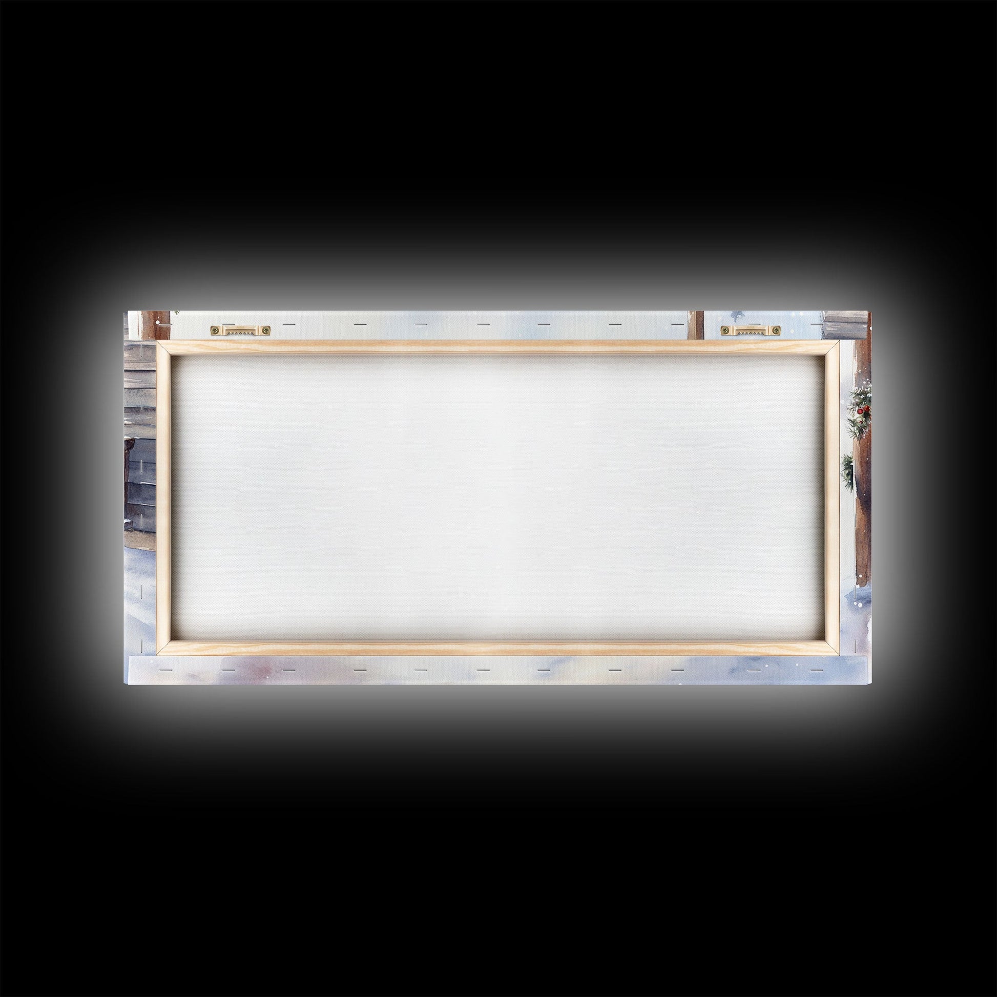 Snowy porch with rocking chair and plaid blanket, framed canvas print, Christmas decor perfect rustic holiday winter wall art