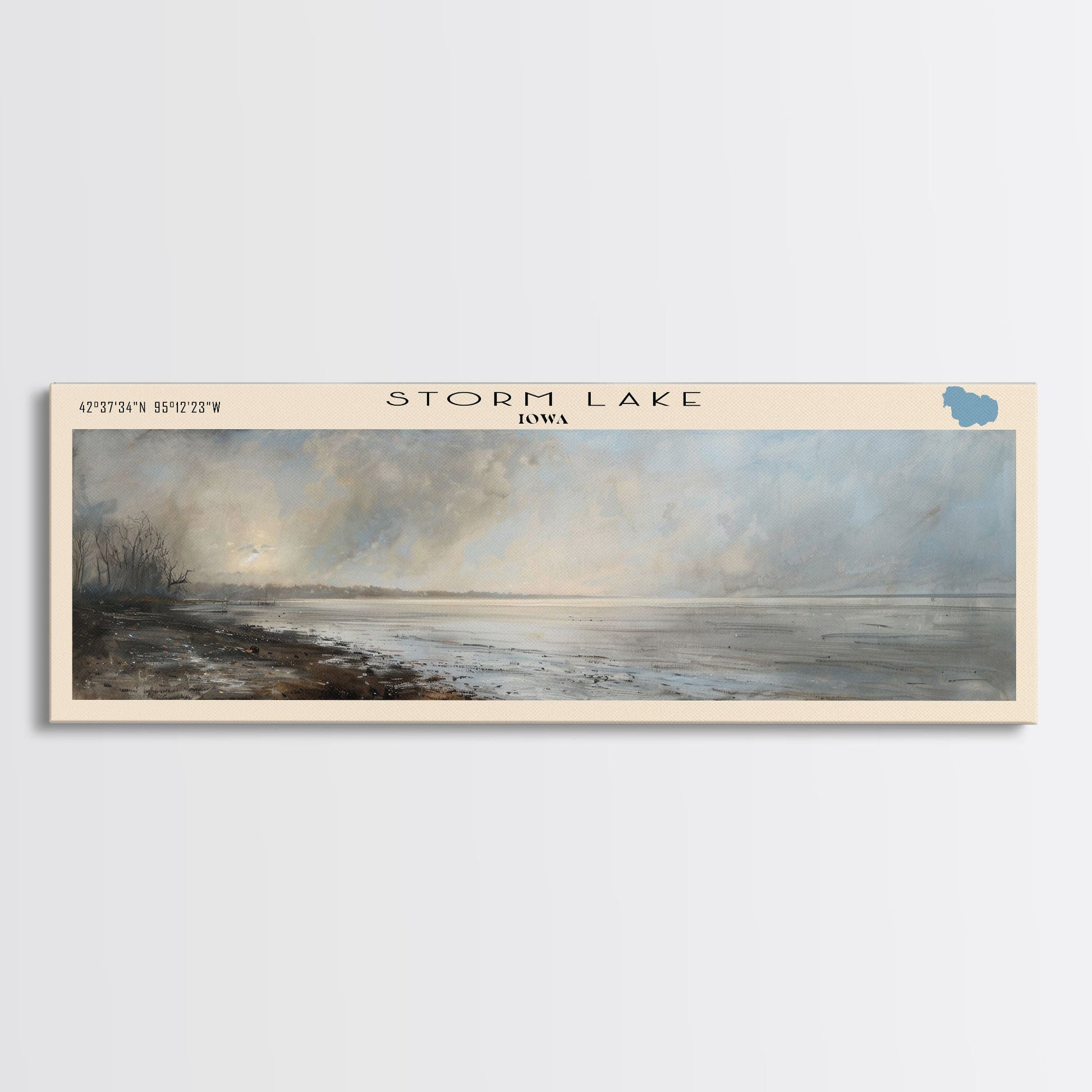 Storm Lake Iowa Panoramic Framed Canvas Print, Lake House Decor, Wall Art, Travel Poster, Beautiful Lake Scene, Modern Art