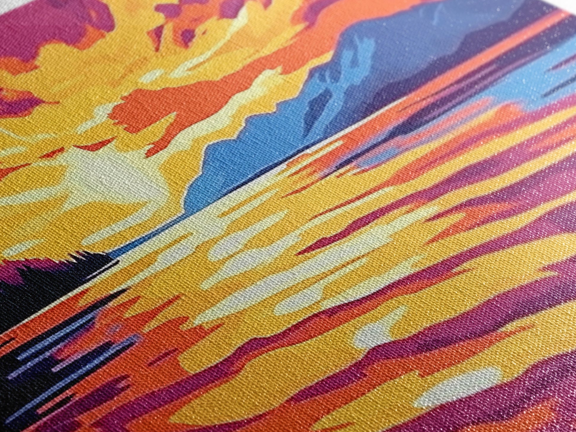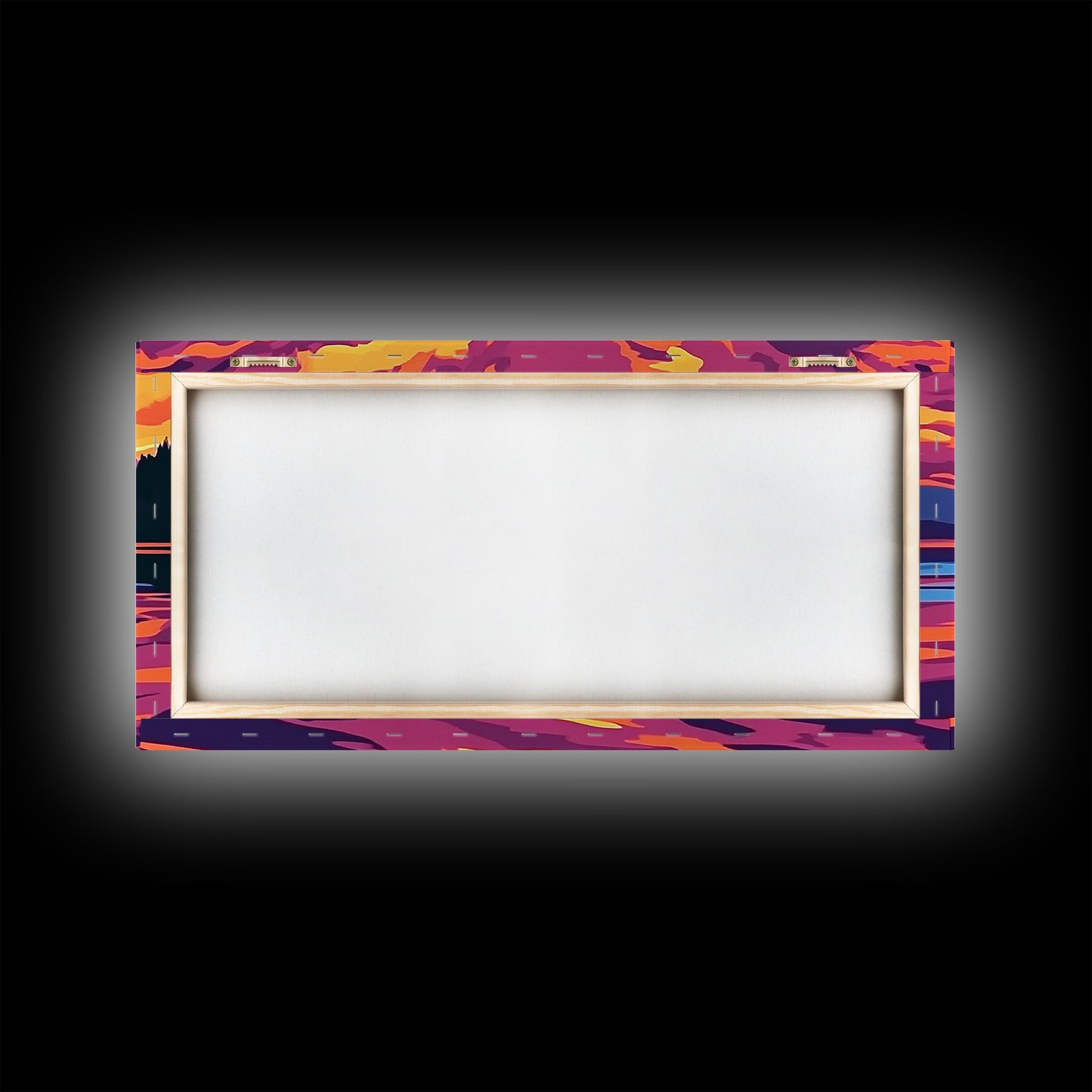 Sunset Glow, Serene Lake Reflection, Mountain Landscape Art, Vibrant Sky Painting, Framed Canvas Print, Office Wall Decor, Modern Home Art