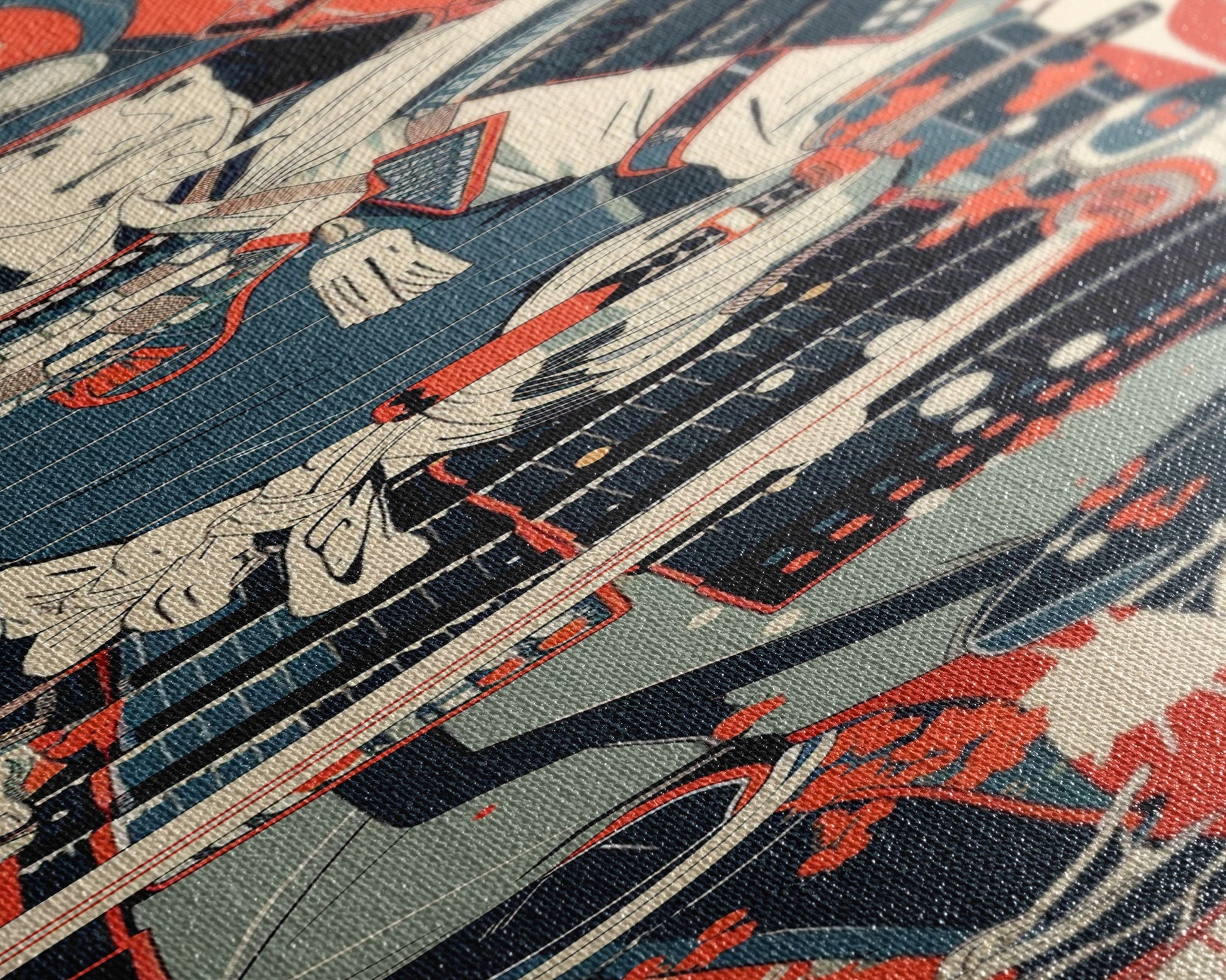 Tall Skinny Art Japanese Style Wood Block Print Samurai Warrior In Full Armor On A Red Background For Framed Canvas Print In Ukiyo-e Style