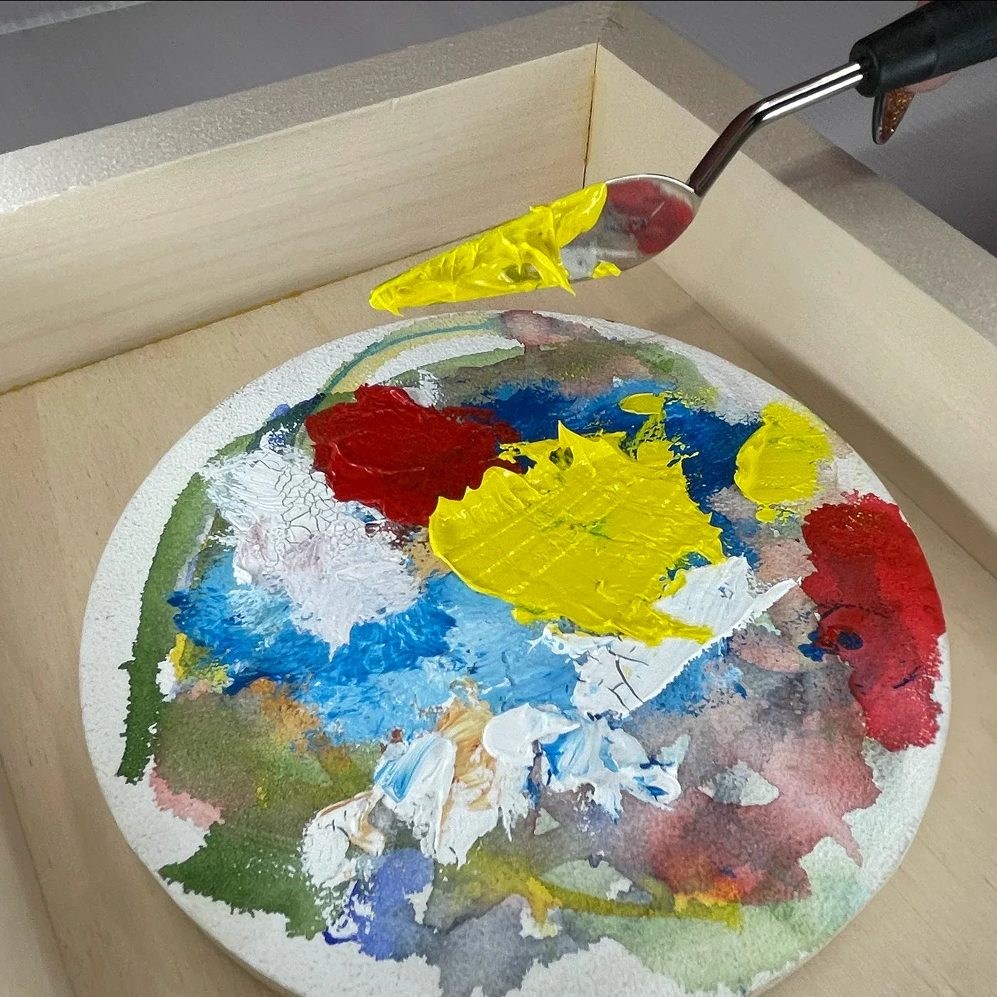 - The Rounded Teardrop Palette Knife, an essential for texture enthusiasts and impasto technique lovers. Crafted from premium stainless steel, this knife ensures lasting durability while its broad, rounded blade effortlessly spreads and blends paints, offering precise and controlled application with its sharp edges.