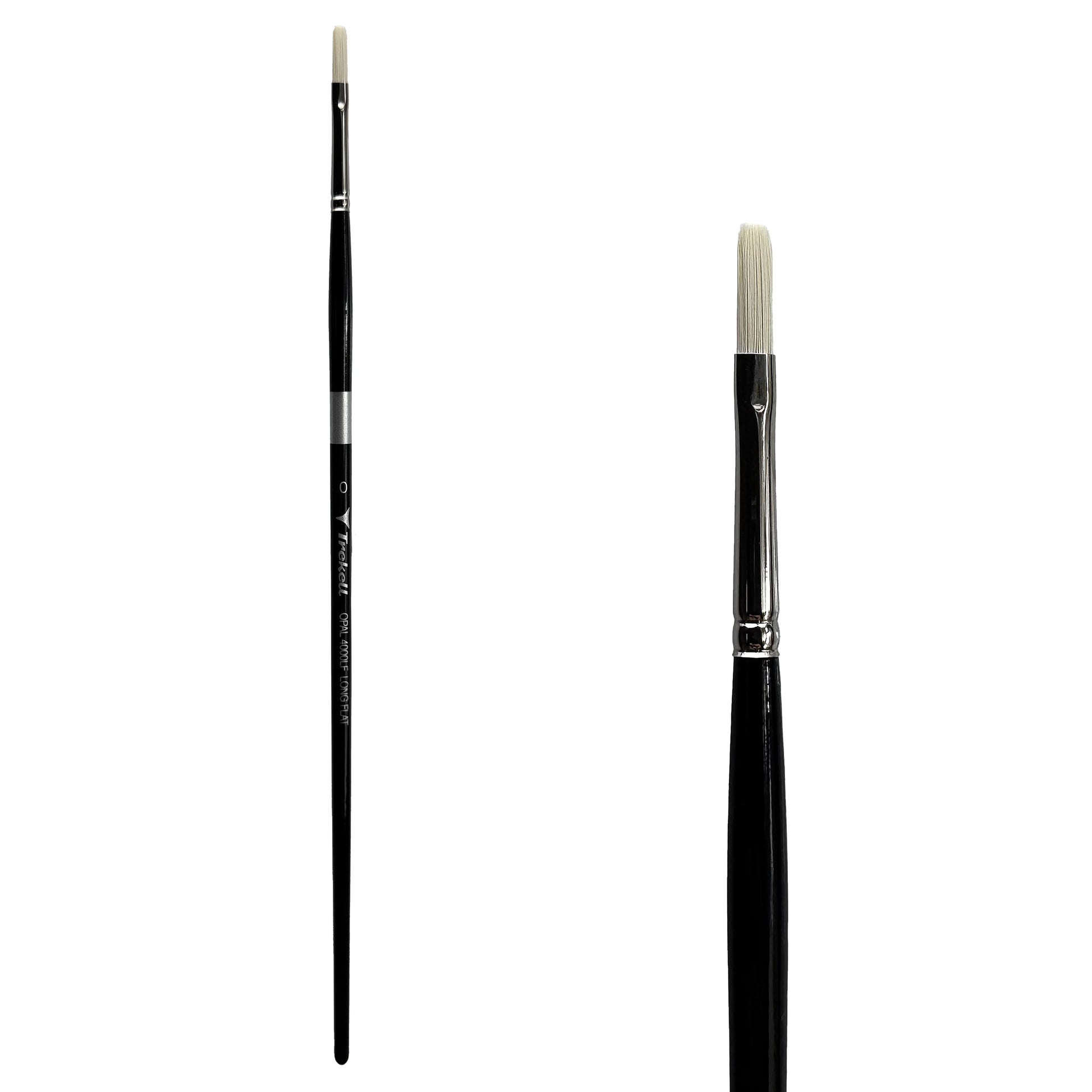 Trekell Opal Synthetic Hog Bristle Long Handle Artist Brush - Size #0 Long Flat
