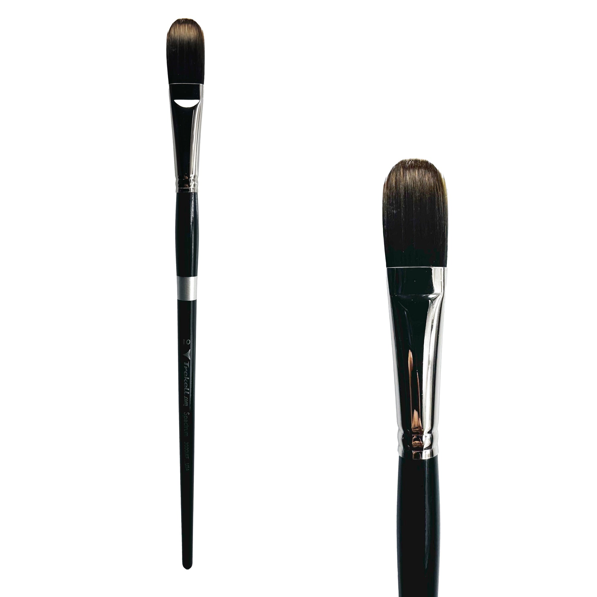 Trekell Spectrum Brushes stand apart for their innovative synthetic fibers that precisely mimic the snap, sharpness, and control of premium animal hair, yet surpass traditional brushes in durability and ease of cleaning. Crafted with a perfectly balanced 10" handle, these vegan-friendly brushes provide exceptional maneuverability, allowing artists to hide their brush strokes, regardless of medium.