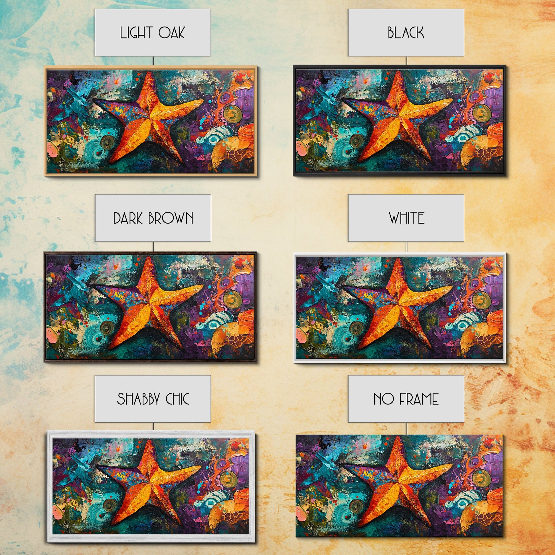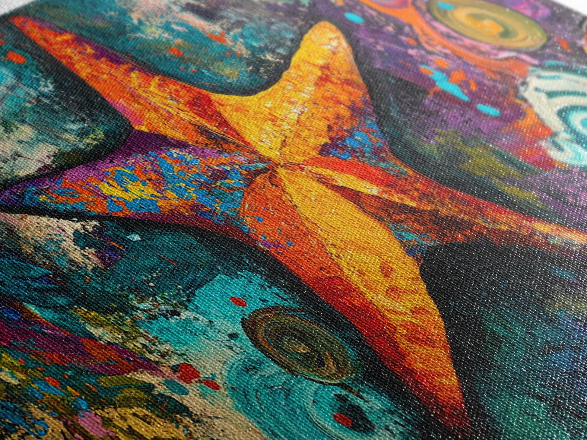 Vibrant starfish, coastal abstract, nautical decor, framed canvas print, ocean painting, coastal painting, whimsical art