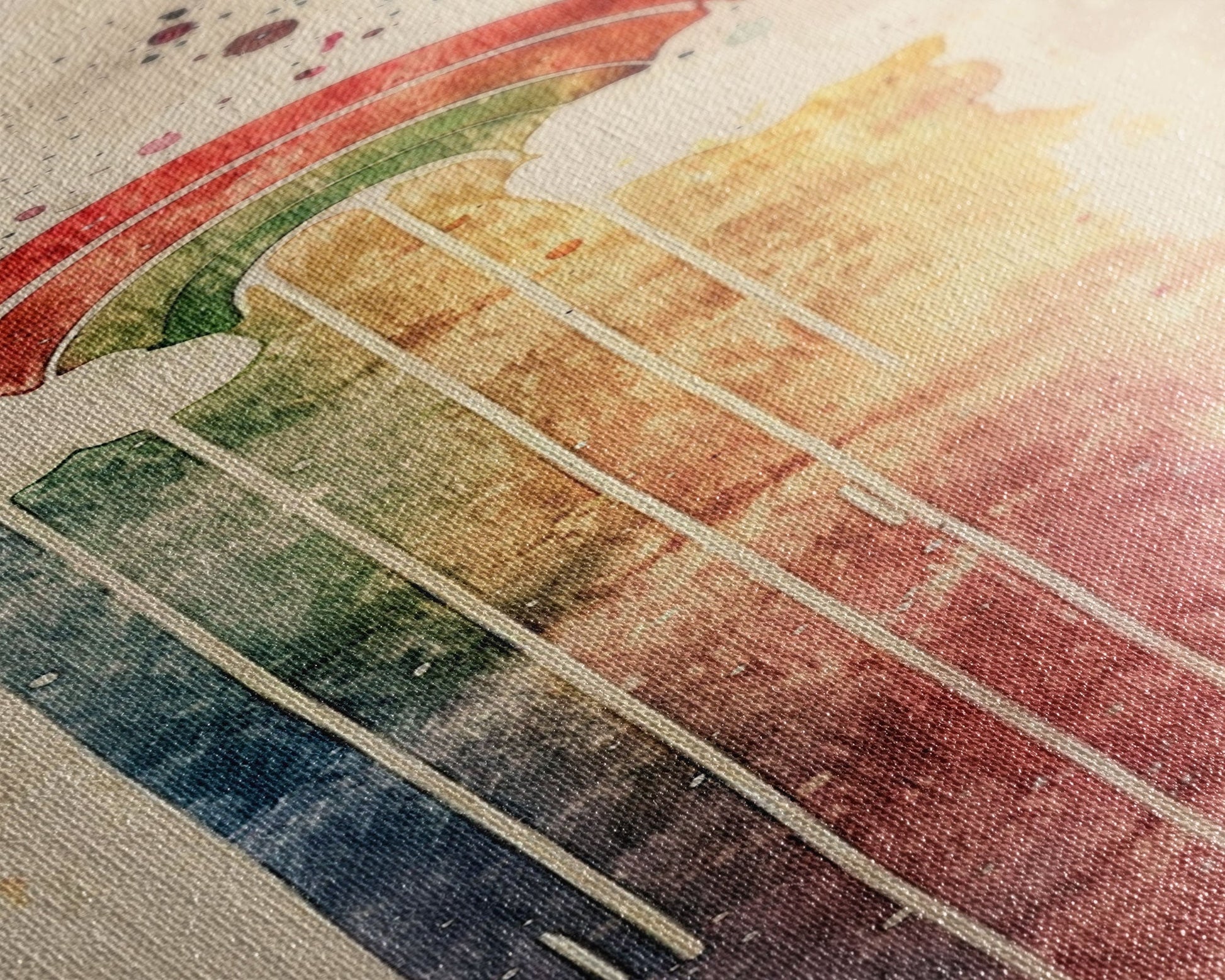 Most of our canvases are made in the USA, with the exception of canvases ordered with the light oak unstained frames, and any large canvases (24x48, 30x60, 16x48 and 20x60) ordered WITH a frame. These are temporarily made in and shipped from Europe, while we try to find a more consistent supplier in the USA.
