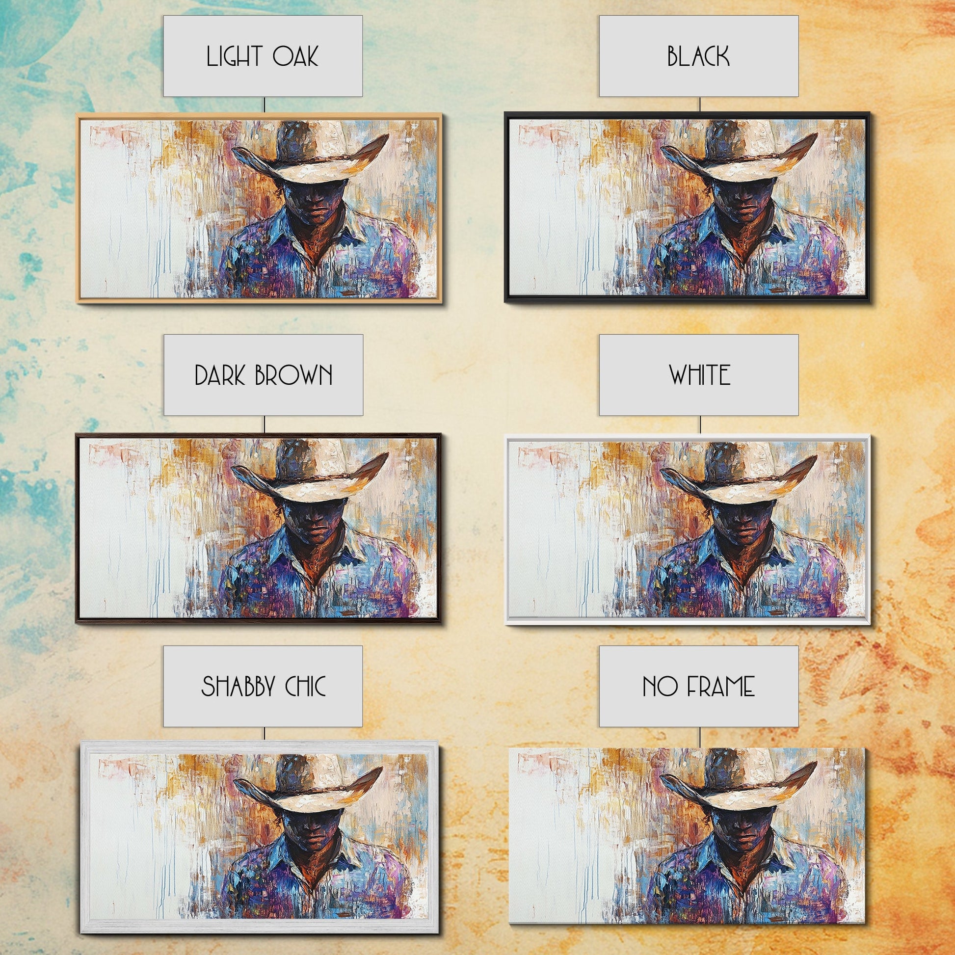Western Cowboy, black cowgirl painting, rustic wall art, moody art, textured painting, cowboy hat art, farmhouse decor, Canvas Print
