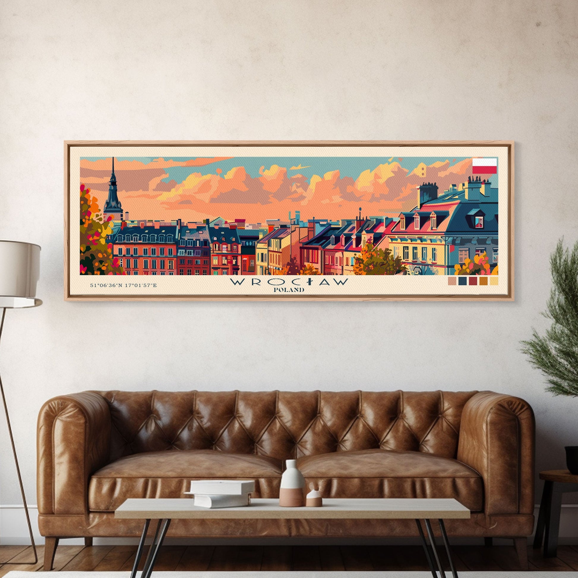 Wroclaw Poland Travel Print Wall Art, Panoramic City Art, Travel Art, Wall Decor, Vacation Gift, Framed Canvas Print Or Metal Art